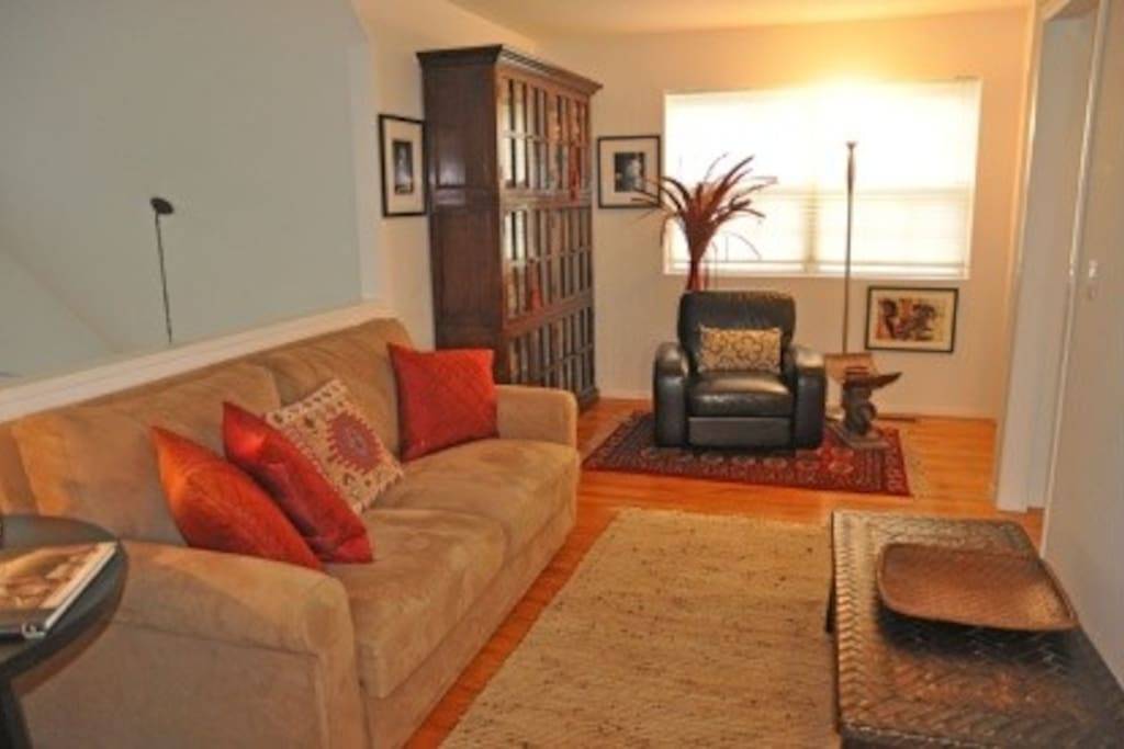 La bibliothèque dispose d'un canapé-lit qui devient un lit king et est extrêmement