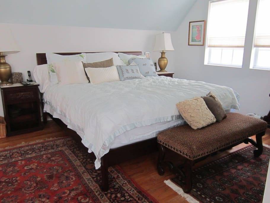 Les deux chambres du rez-de-chaussée peuvent être soit comme deux jumeaux dans chaque chambre ou un lit king face dans chaque chambre.