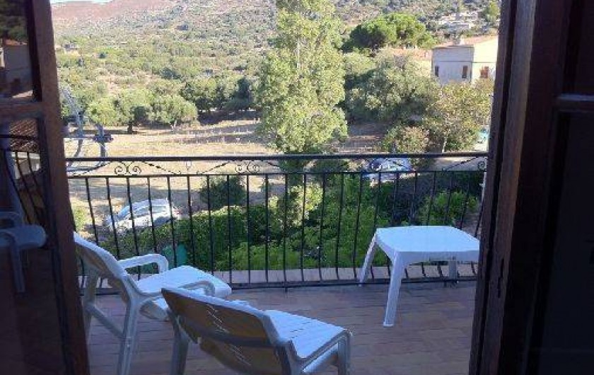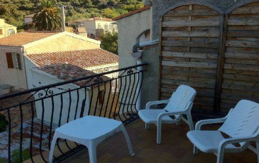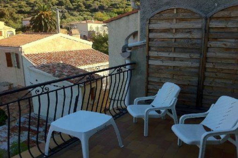2ème Etage - Chambre avec lit deux personnes, Salle de bain comprenant douche, lavabo et wc - Terrasse ensoleillée (4m par 2,5) avec belle vue sur les deux villages et la colline - 4 fauteuils extérieurs