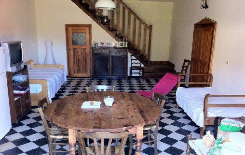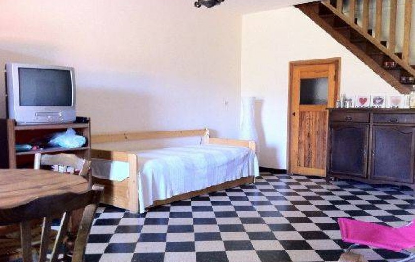 1er Etage - Pièce comprenant une salle a manger avec coin cuisine, canapé lit deux personnes, balcon vue dégagée sur colline avoisinante et autres villages (MONTEMAGIORRE,