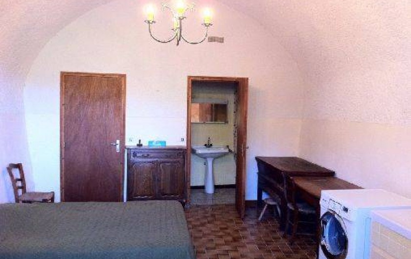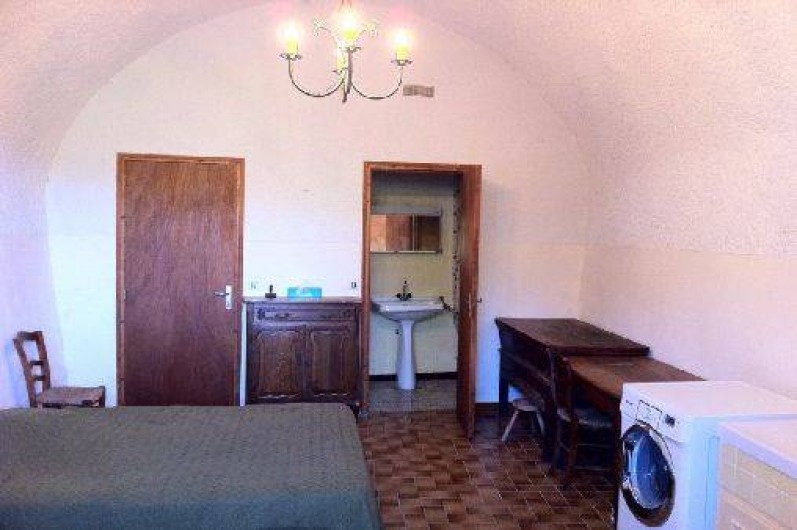 RDC - Grande cave voutée aménagée - Studio avec lit deux personnes - Salle de bain comprenant douche, lavabo et wc