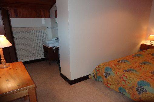 • Une chambre avec un lit de 130 cm de large et un lavabo,