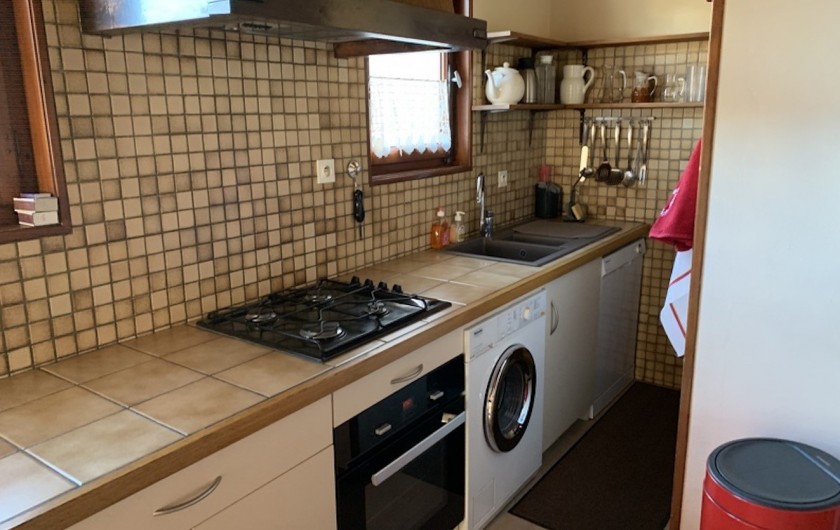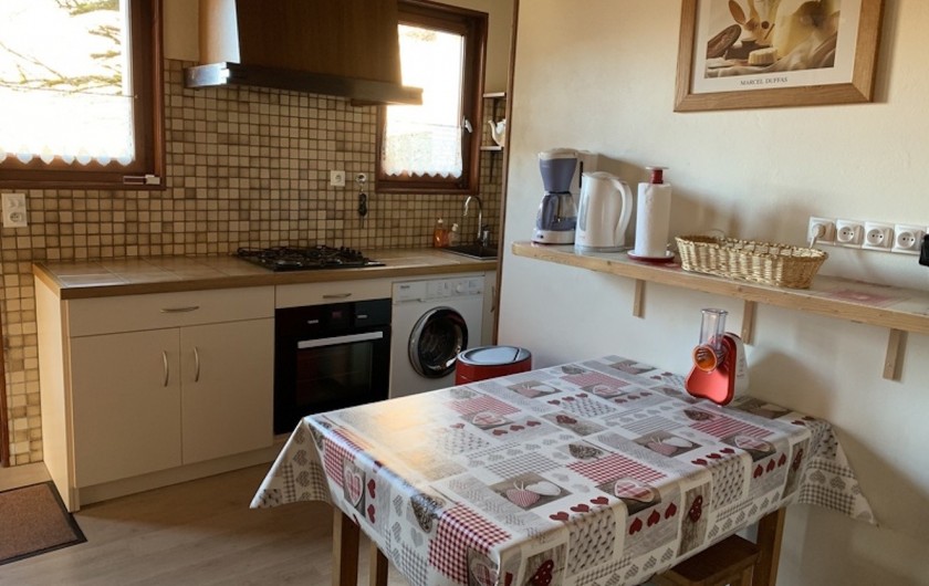 • Une cuisine équipée, vaisselle et batterie de cuisine complète, batteur, mixeur électrique, rappe électrique, balance de cuisine, un caquelon et réchaud à fondue, un appareil à raclette, une cocotte minute, une friteuse, cuisinière à gaz, four électrique, four micro-onde, réfrigérateur, lave-vaisselle, lave-linge, cafetière Nespresso.