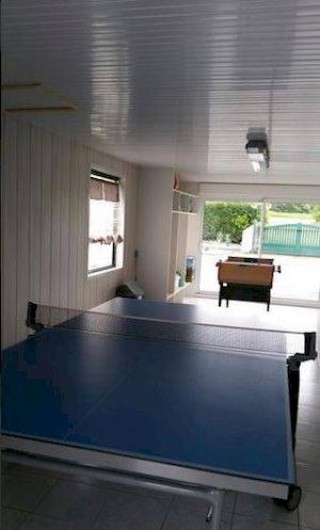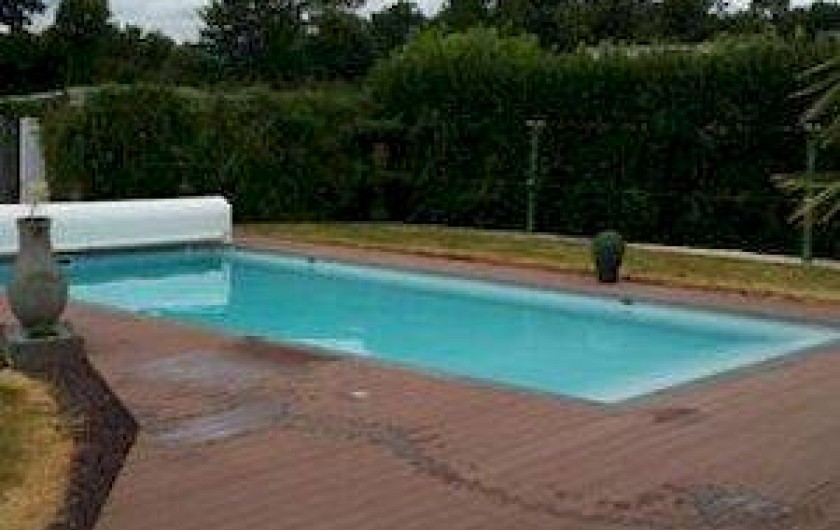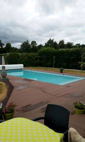 Maison de vacances sur terrain clos avec piscine extérieure chauffée, idéalement située à 15 Kms des plages, 30 kms du Golfe du Morbihan( départ vers les iles), 30 kms de La Baule et Vannes, commerces à proximité 1 km (supérette, boulangerie, pharmacie, cabinet médical, tabac, journaux). Cette maison comprend 5 chambres avec 1 lit double dans chacune d'elles et un lit bébé dans une des chambres, 2 salles de bains dont une avec douche et baignoire et l'autre avec douche, une salle de jeux avec baby-foot et table de ping pong, une cuisine aménagée et équipée ( four, plaque, hotte, … lave vaisselle, frigo), un séjour, un salon, une véranda avec accès direct sur la piscine, une terrasse avec salon de jardin, barbecue et transats. Les couettes et les oreillers sont fournis mais pas le linge de lit. A votre disposition également: Wifi, télévision, lave linge et congélateur. Lire moins Lire la suite