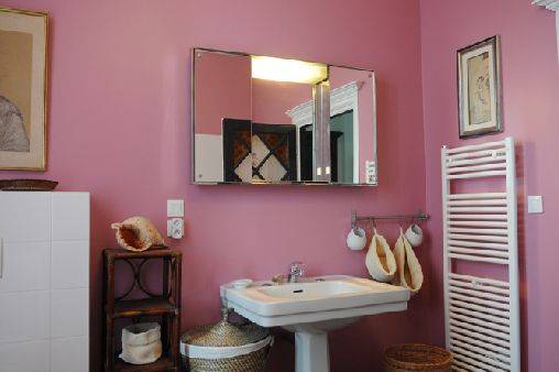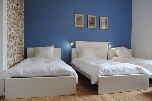 A l'étage : deux salles de bains, 4 chambres (3 avec 1 lit double, une avec 1 lit double et 1 lit simple, une avec 4 lits simples, 1 lit 180x200 dans la grande salle et couettes pour tous les lits).