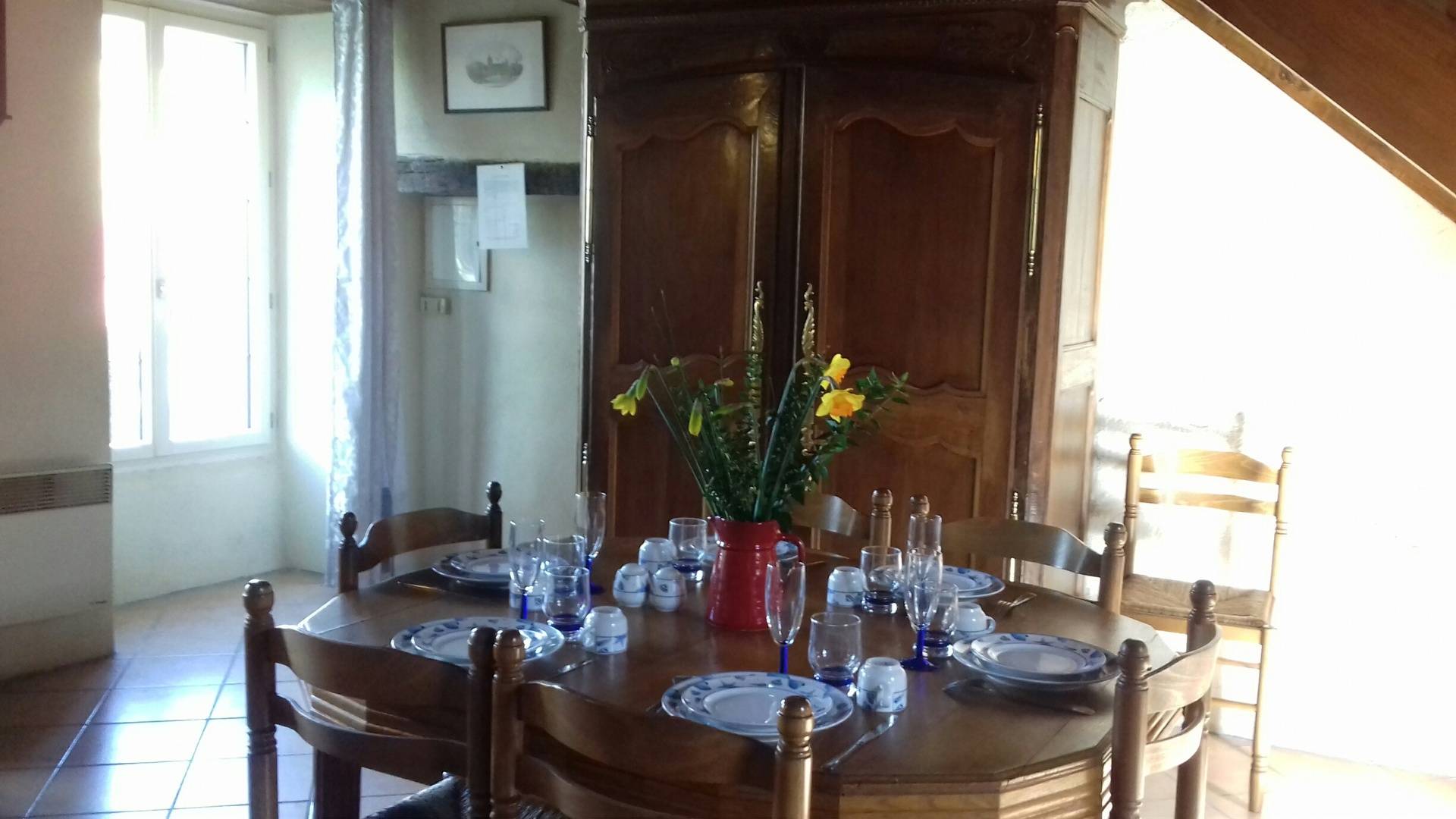Ce gîte a été restauré en conservant l'aspect du 15 eme siècle tout en y joignant le confort nécessaire à un bon séjour ,vous y trouverez au rez de chaussée une grande pièce de vie de 35 m2 avec grande cheminée (le bois est offert) un salon avec banquette clic clac et tv et une cuisine aménagée avec Plaques à induction ,four,frigo,congélateur , lave vaisselle ,micro ondes et tout le petit électroménager ,une salle d'eau avec douche 1 lavabo et lave linge ,les wc sont séparés ;