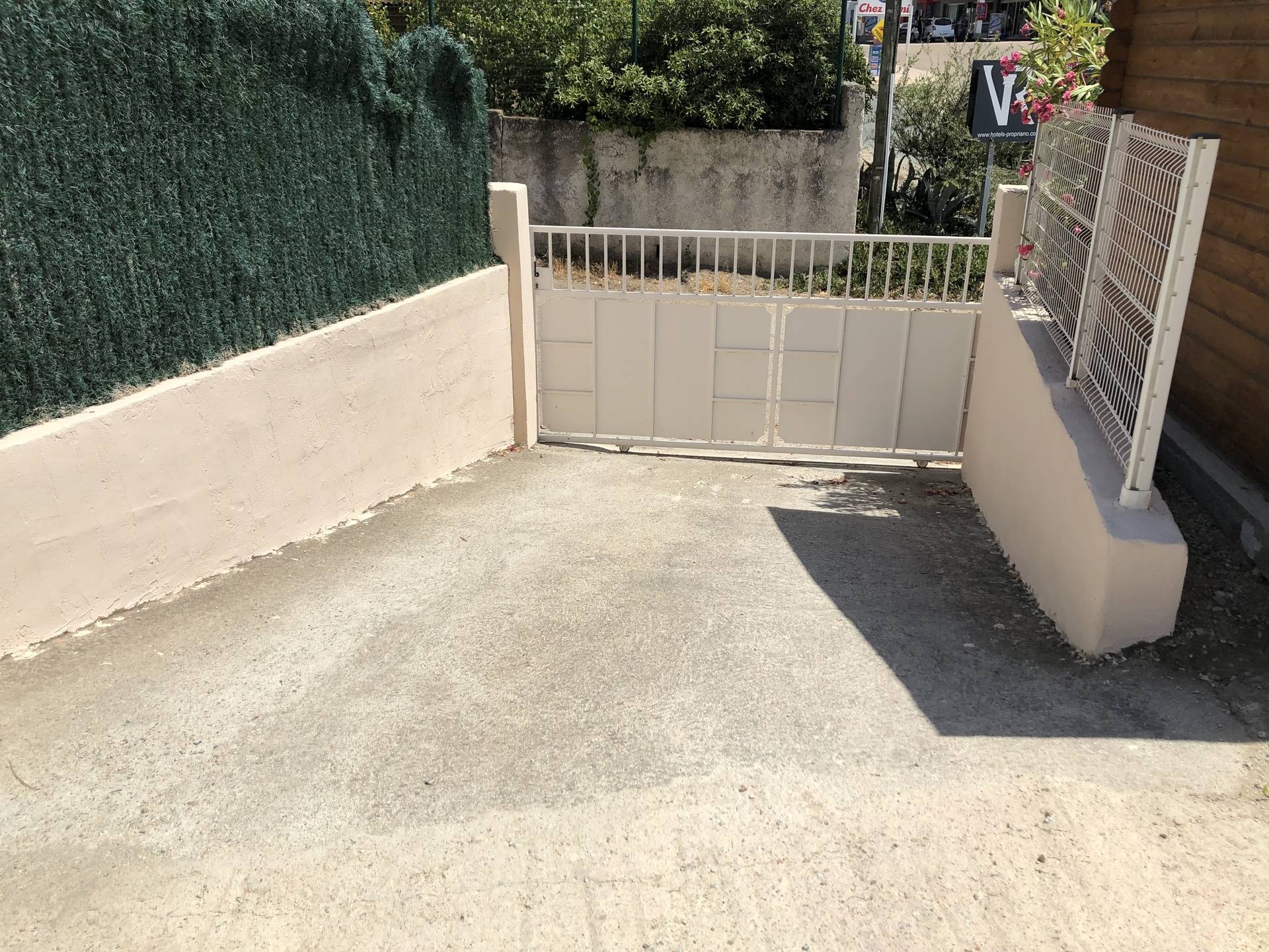 Entrée individuelle sur un parking clôturé permet aux enfants de jouer en toute sécurité et possibilité de garer deux voitures.