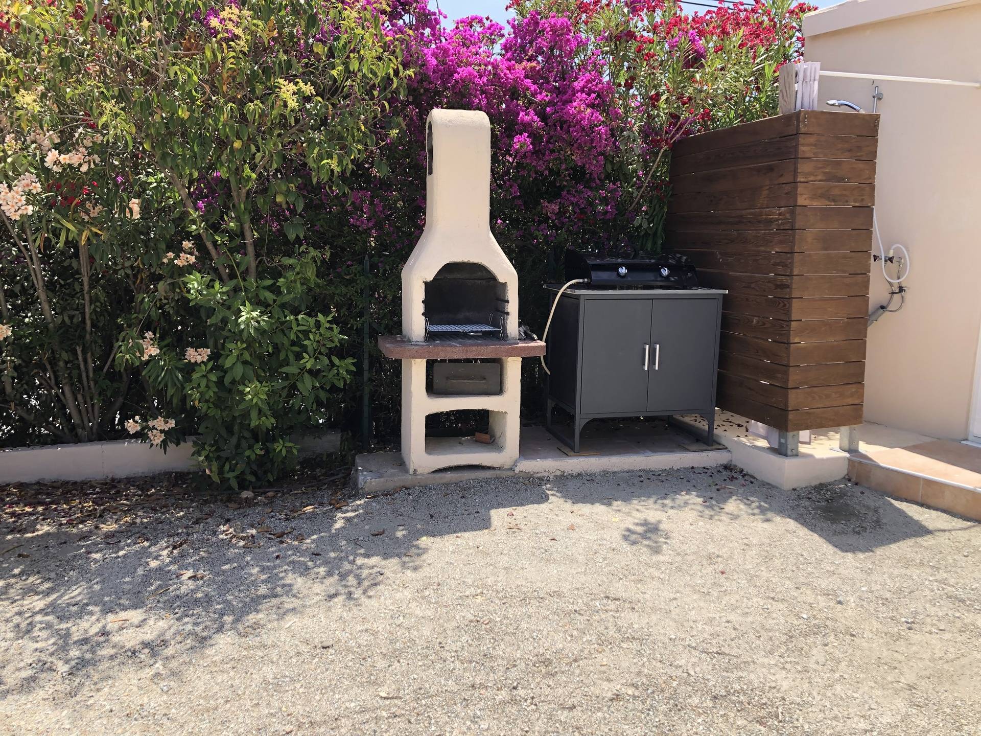 Barbecue plancha à l'extérieur plus douche extérieure très pratique pour les retours de plage - transats