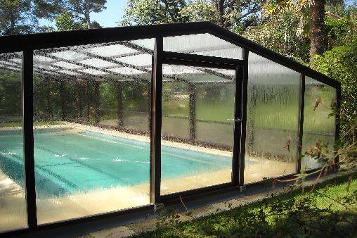 Piscine de 5m x10m, entourée de palmiers, fruitiers et chênes et disposant d'un abri haut électrique assurant une température idéale quel que soit le temps + pool house avec cuisine équipée.