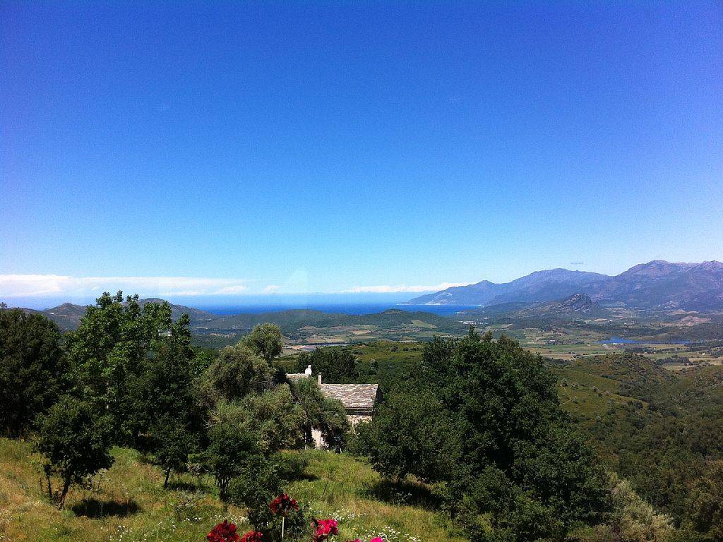Maison chaleureuse disposant d'une terrasse de 70 m2 ombragée par un chêne six fois centenaire. située dans le village, la vue est panoramique sur le golfe de Saint-Florent et le Cap Corse. La terrasse dispose d'une cuisine d'été intégrée dans un four à pain d'époque. Située à 300 m d'altitude, les soirées sont très agréables. Voir le blog de la maison qui présente, entre autres, 18 appréciations illustrées.