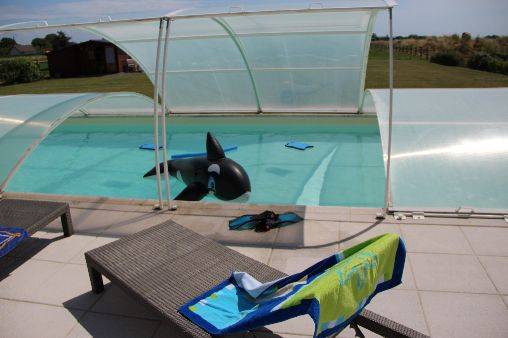 Situé dans le Havre de Régnéville sur Mer face au Phare d'Agon Coutainville et des Iles Chaussey, Maison de 110m2 : salon, salle à manger, cuisine aménagée ouverte, arrière cuisine, 4 chambres, 2 salle de bains, 2wc disposant une terrasse avec salon de jardin et bains de soleil, barbecue. Le site offre un espace clos de 1000m2 avec une piscine extérieure chauffée d'avril à octobre jardin, cour fermée Equipé d'un écran plat, lecteur DVD, four , micro ondes, frigo américain, lave-linge, sèche-linge cafetière Dolce Gusto