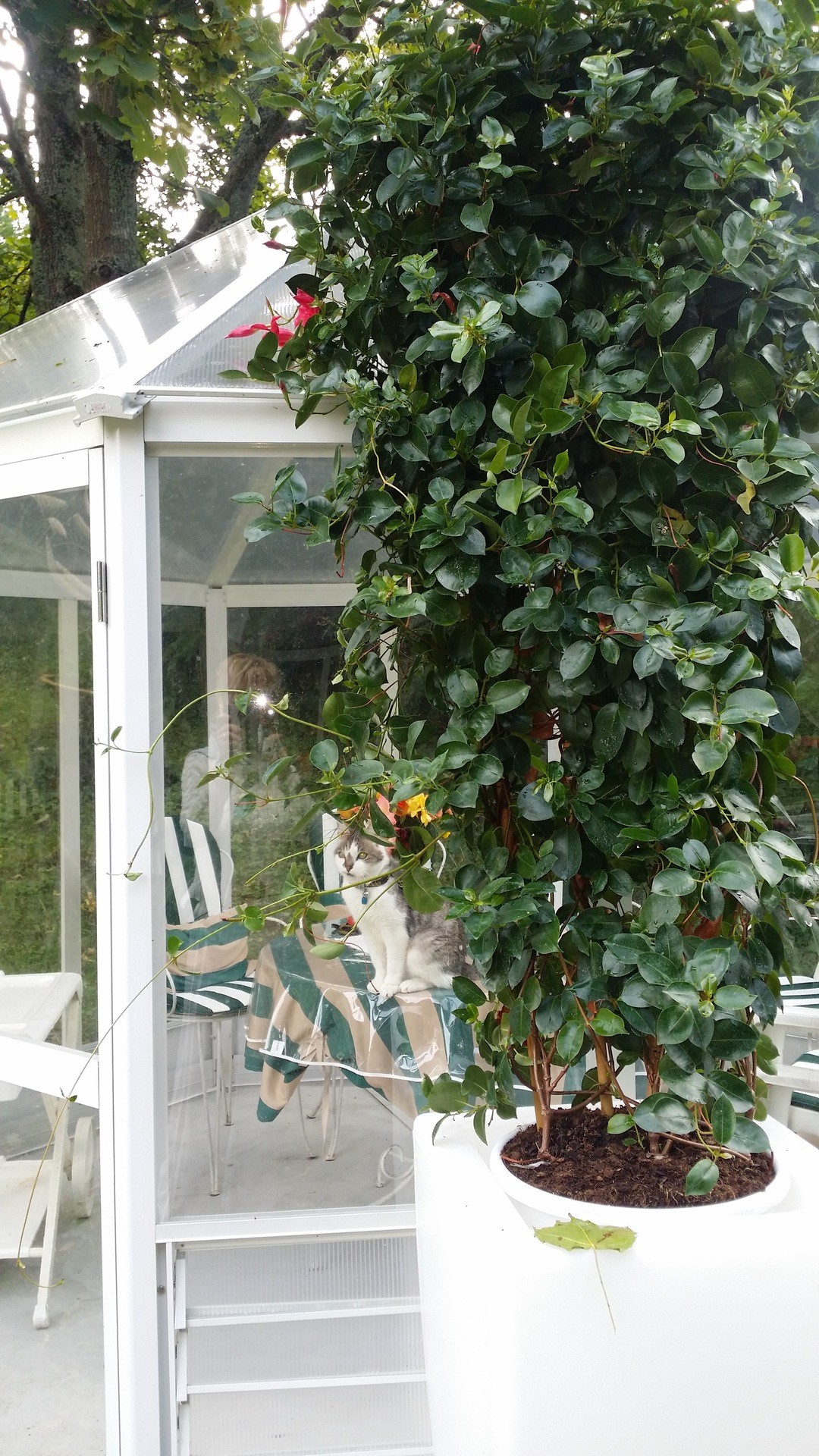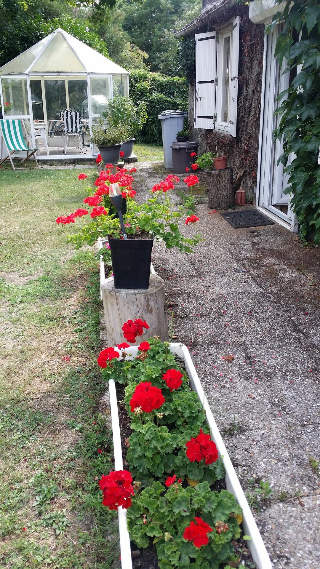 1 véranda hexagonale est à votre disposition avec tables et chaises pour les soirées fraîches..