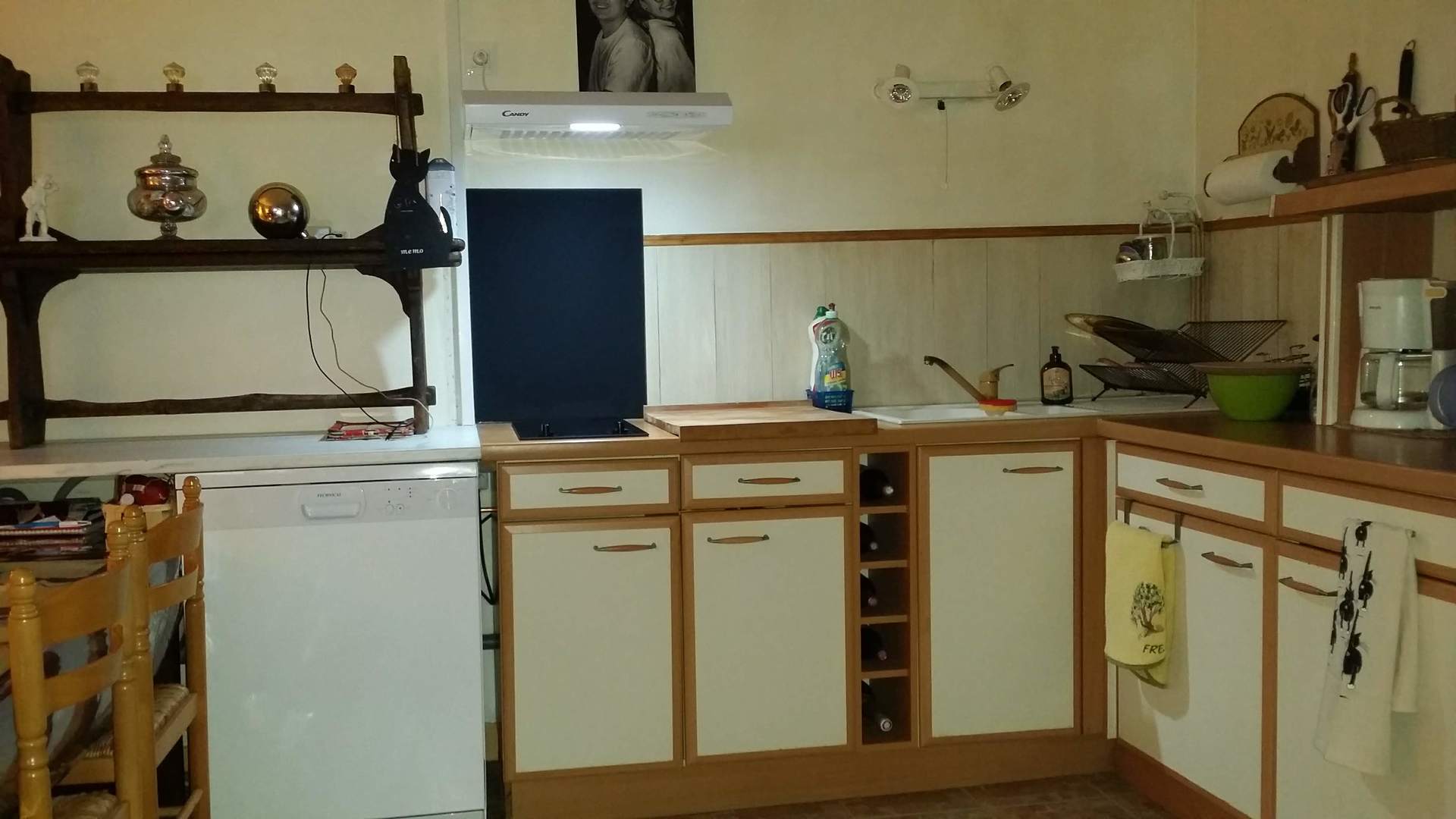 Elle comporte une très grande cuisine équipée avec cheminée..1 salon chambre canapé convertible (2couchages)...1 grande chambre avec lit 140 et une banquette lit 90...1 salle d.eau avec WC...