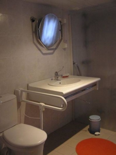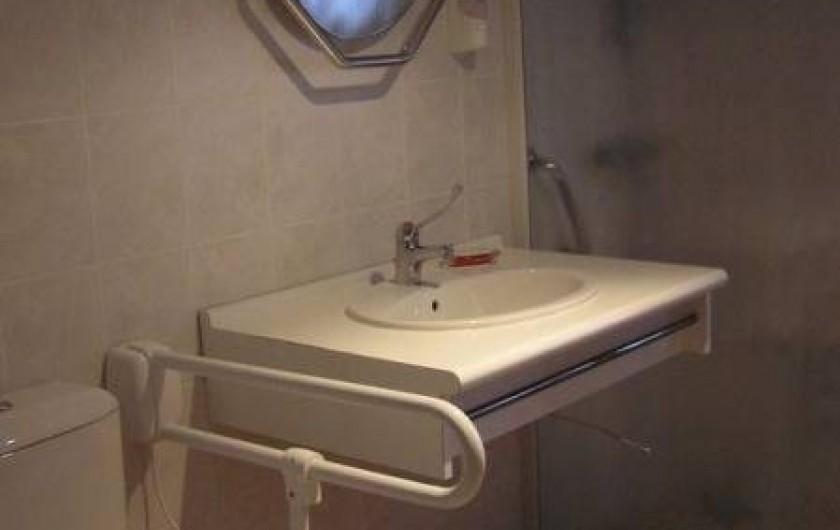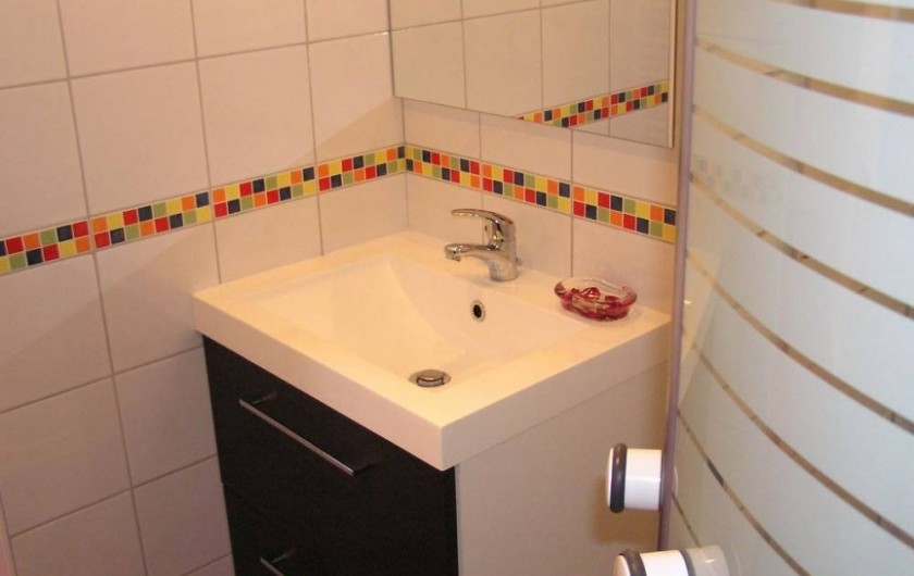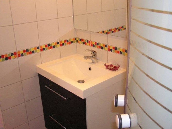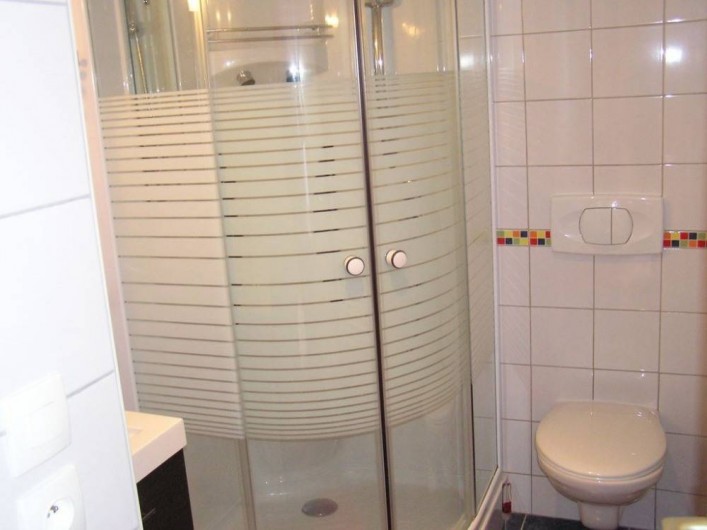 1 salle d'eau avec douche et siège,vasque et WC,sèche cheveux.