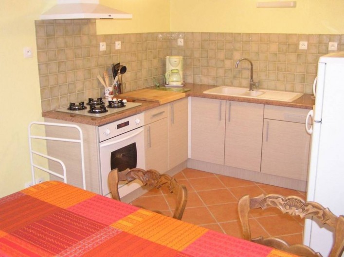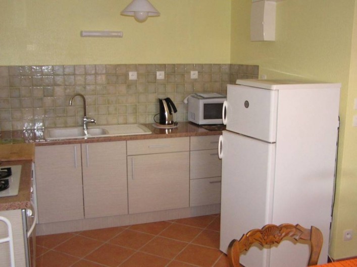 Maison confortable avec au RDC , 1 grande pièce à vivre avec cuisine amménagée ,coin repas et salon ( télévision,radio ),placard dans le hall d'entrée,