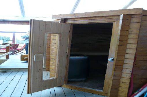 La piscine intérieure, le sauna et le coin détente font partie intégrante de la maison,