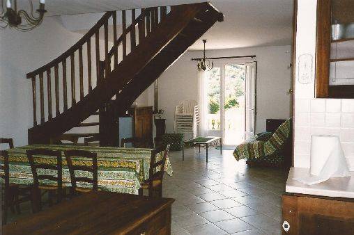 A louer , au centre du village, une maison mitoyenne avec double vitrage, capacité d'accueil 6 personnes, sur 2 niveaux avec au 1er étage : 1 grand séjour salon (40 m²) avec cuisine aménagée tout confort : frigo /congel., Lave L, lave V, Four, M.O., plancha élect. TV, 1 terrasse 25m² avec 2 transat, table et 8 fauteuils, très belle vue sur les