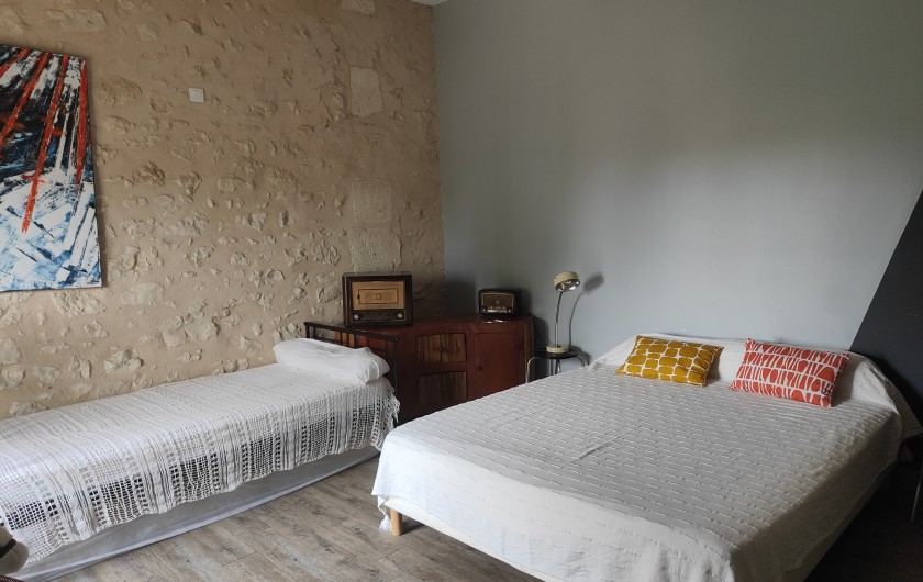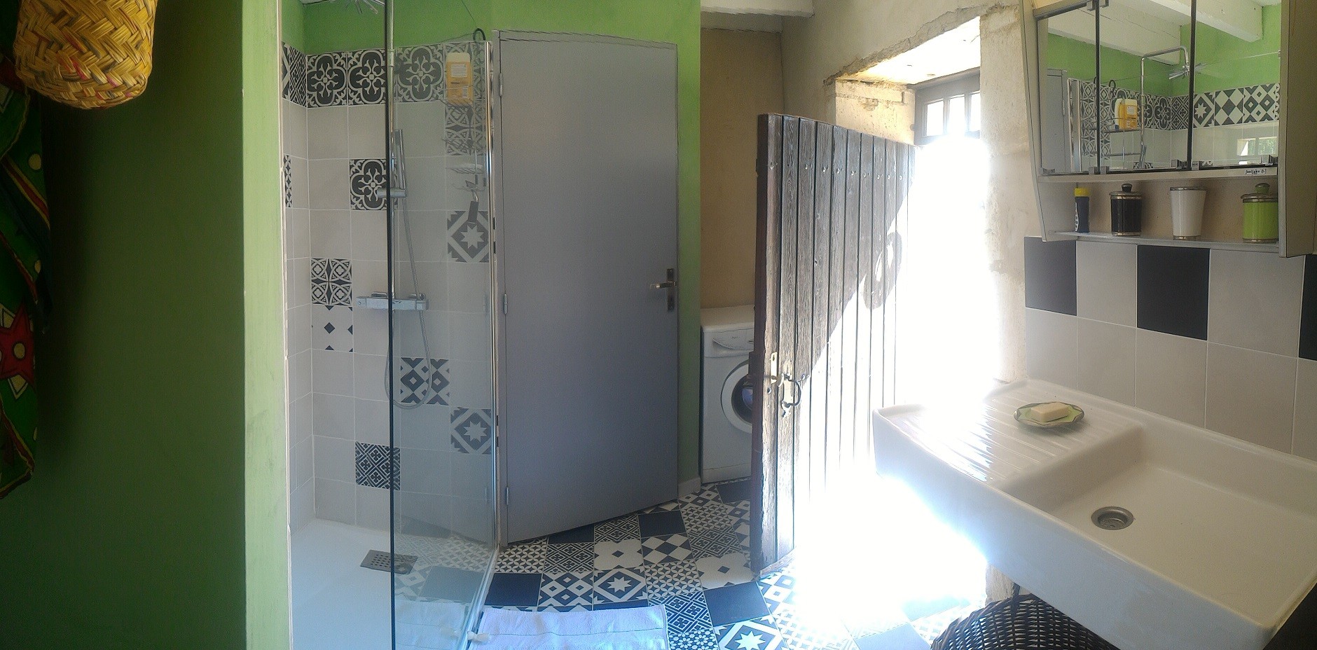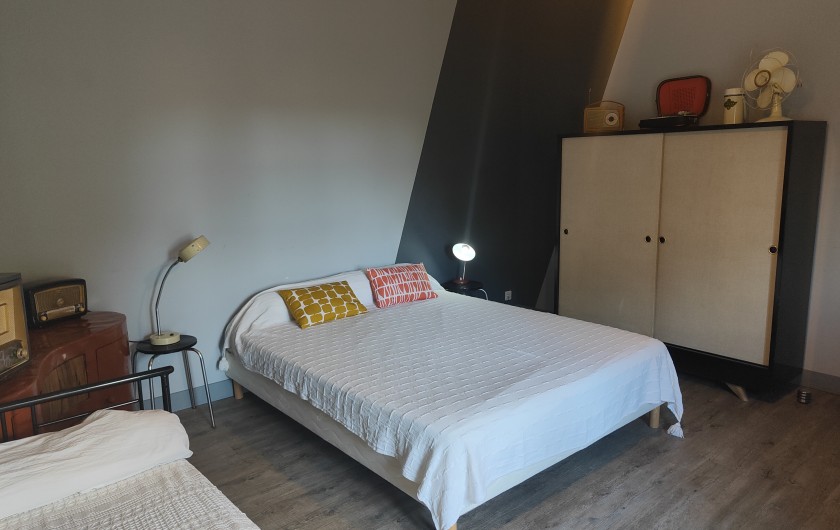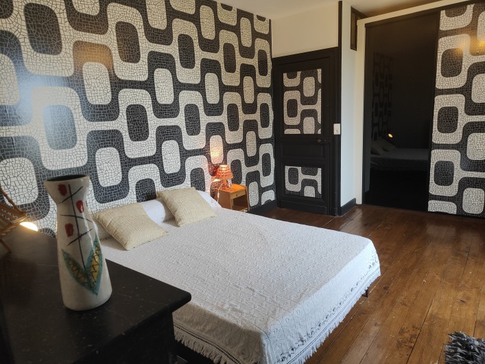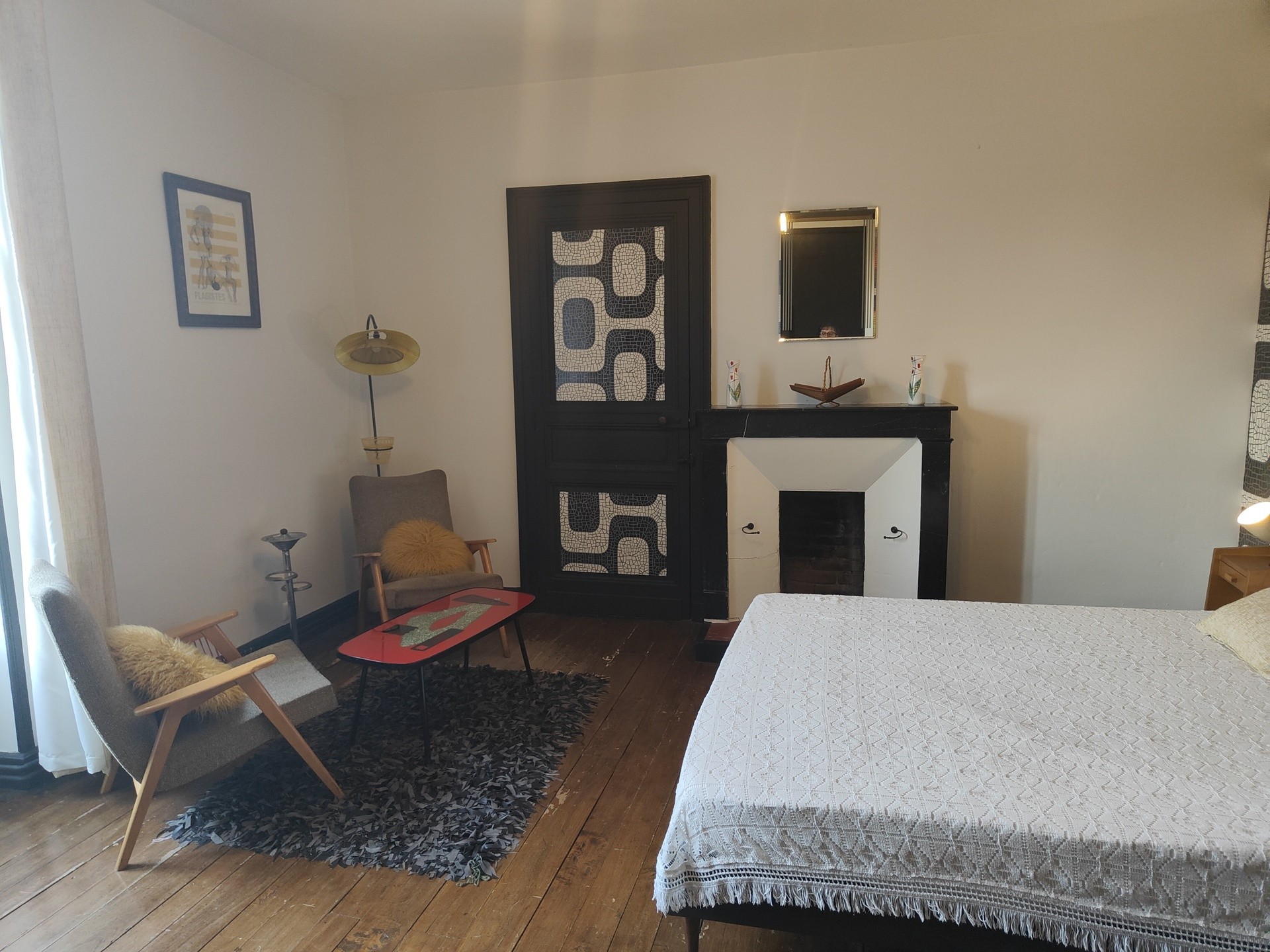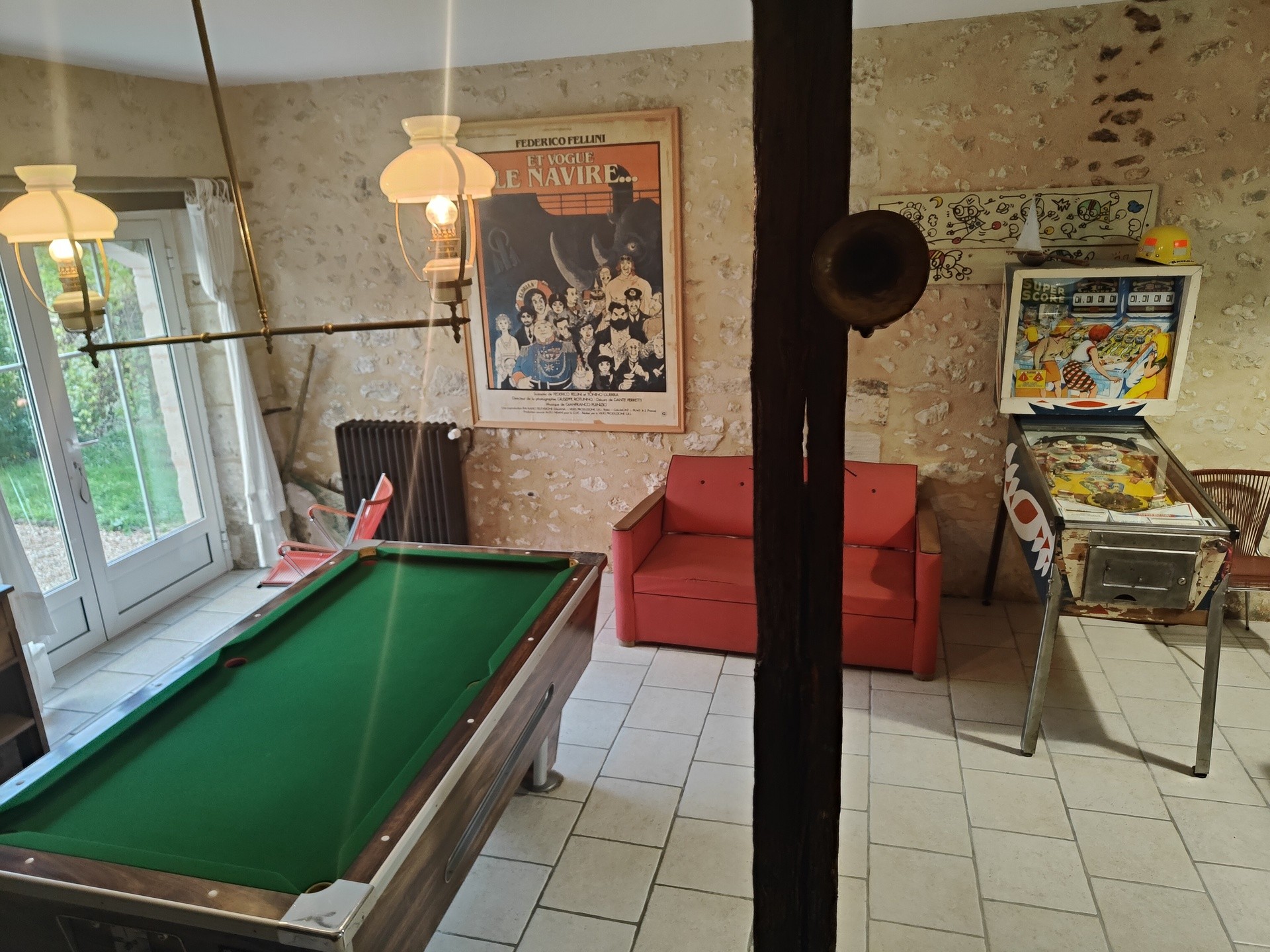 La maison se compose au rez-de-chaussée d’une cuisine meublée années 50 offrant tout l’équipement nécessaire pour les grandes familles et les groupes d’amis (frigo américain, piano Godin, grande table de ferme, lave vaisselle…), d’un salon chaleureux, d’une salle de jeux avec billard et baby foot et d’un WC.