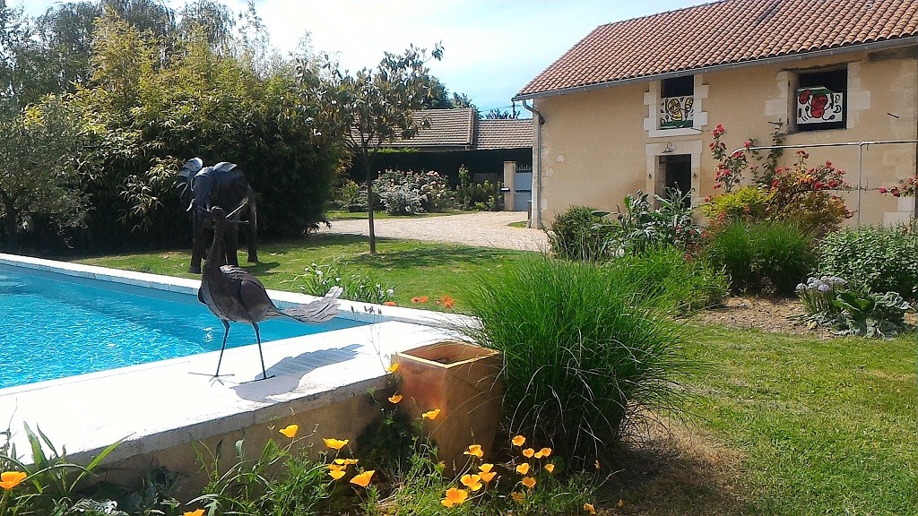 A la maison vous pourrez vous détendre dans le hamac au bord de la mare, profiter de la piscine chauffée, flâner dans le jardin ou découvrir nos véhicules de collection et créations d’artistes locaux ou plus lointains.