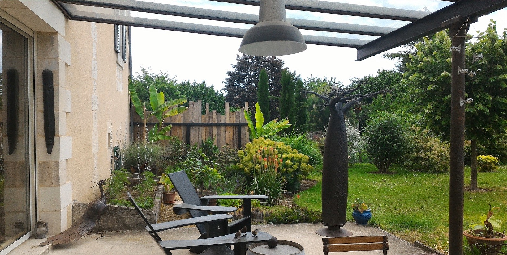 Jean-Michel est amoureux des plantes et recherche des espèces rares. Nous avons entièrement pensé le jardin pour en faire un lieu de détente et de flânerie : une mare, des fleurs merveilleuses, une belle piscine chauffée type bassin en pierre de taille, une « mini forêt », un coin plantes exotiques, et des surprises dispersées ça et là, le tout sans aucun vis-à-vis avec les voisins.