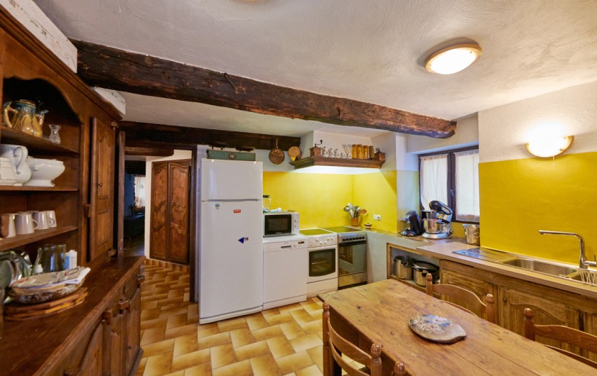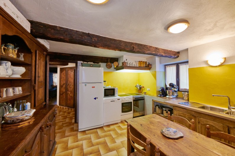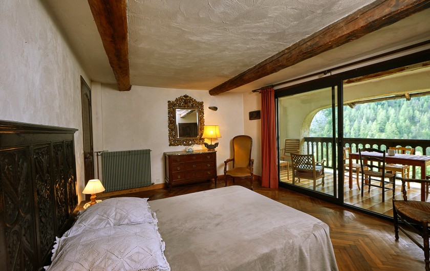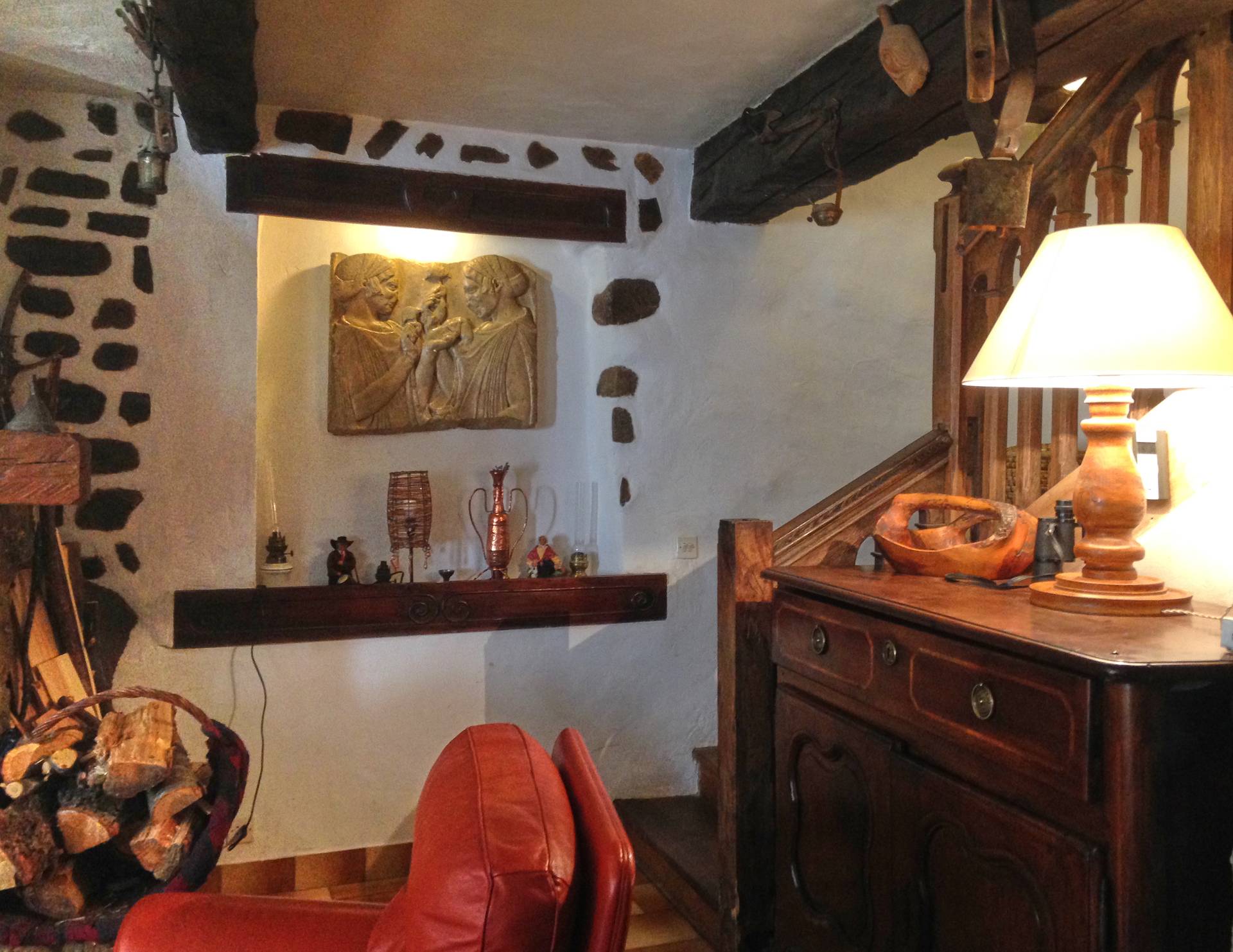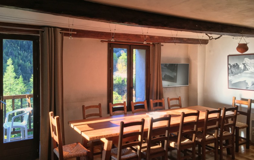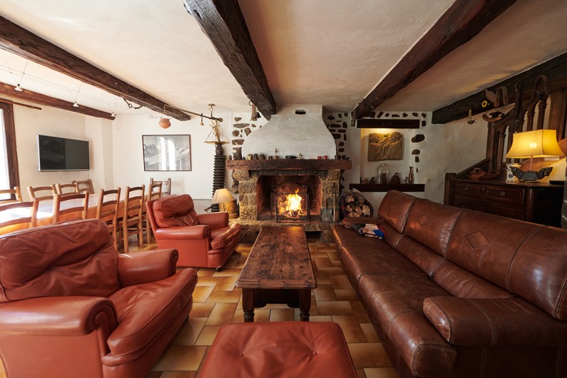Grand séjour avec belle cheminée et mobilier rustique, balcon.Le premier étage offre 3 chambres dont une donnant sur une terrasse abritée idéale pour le petit déjeuner ou la sieste, avec vue exceptionnelle sur la montagne et jardin en contrebas.