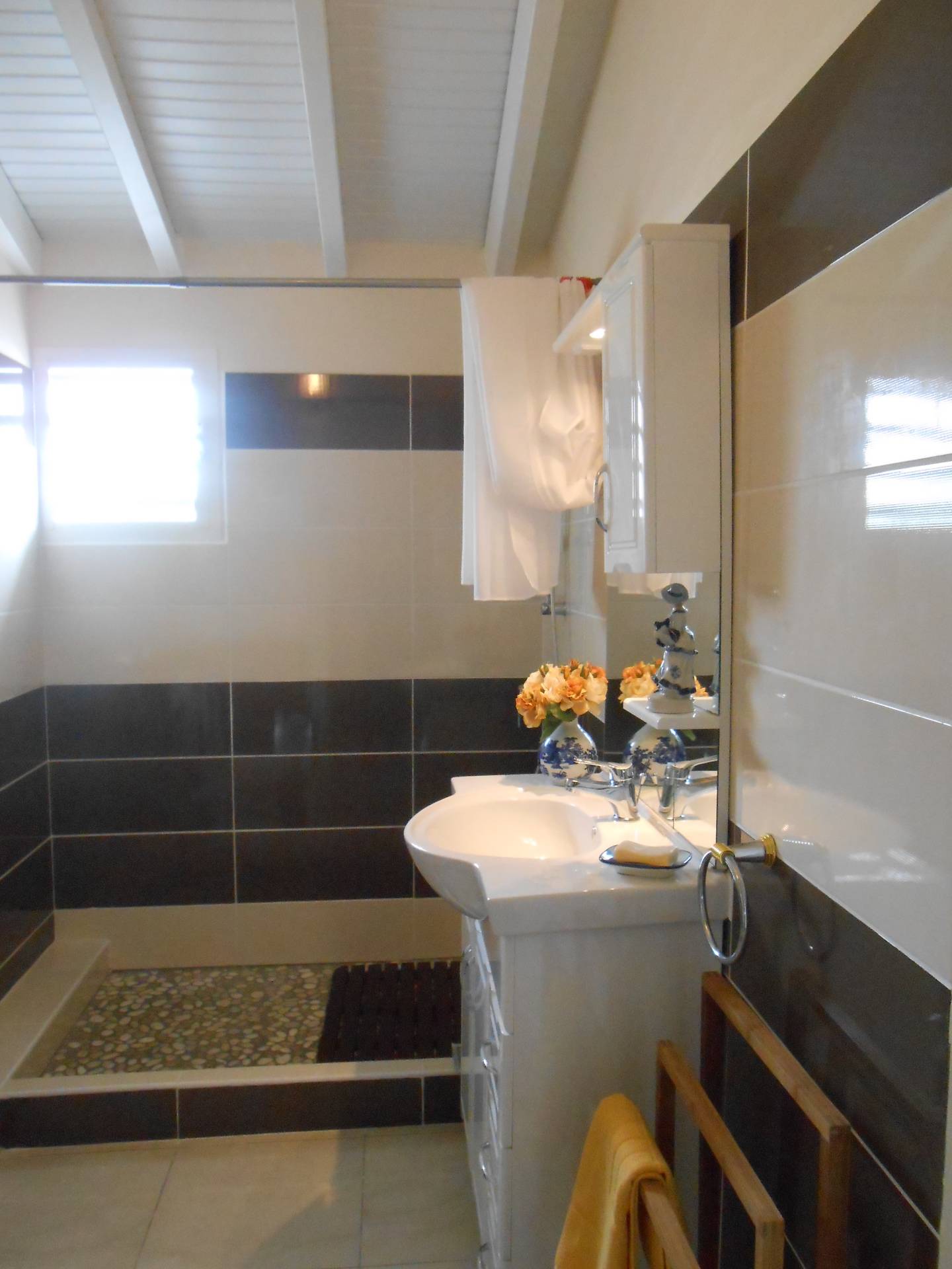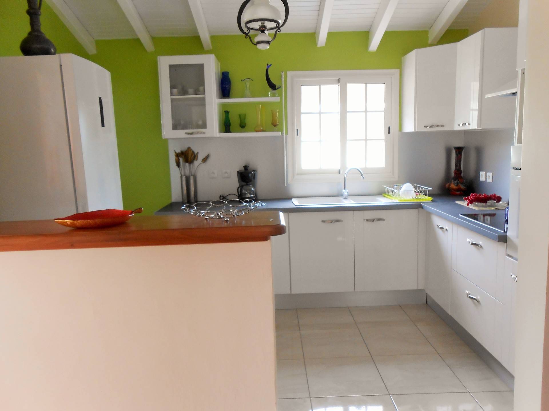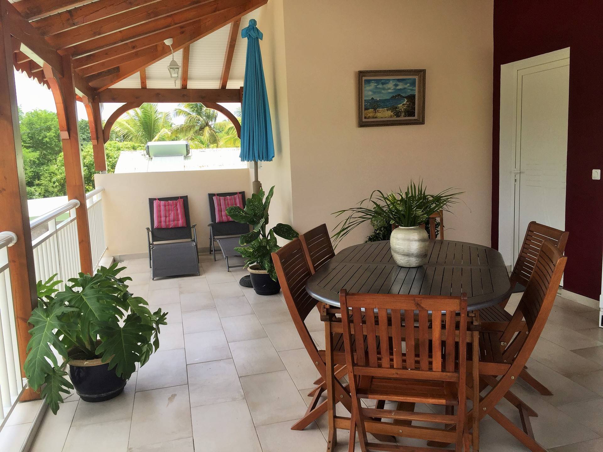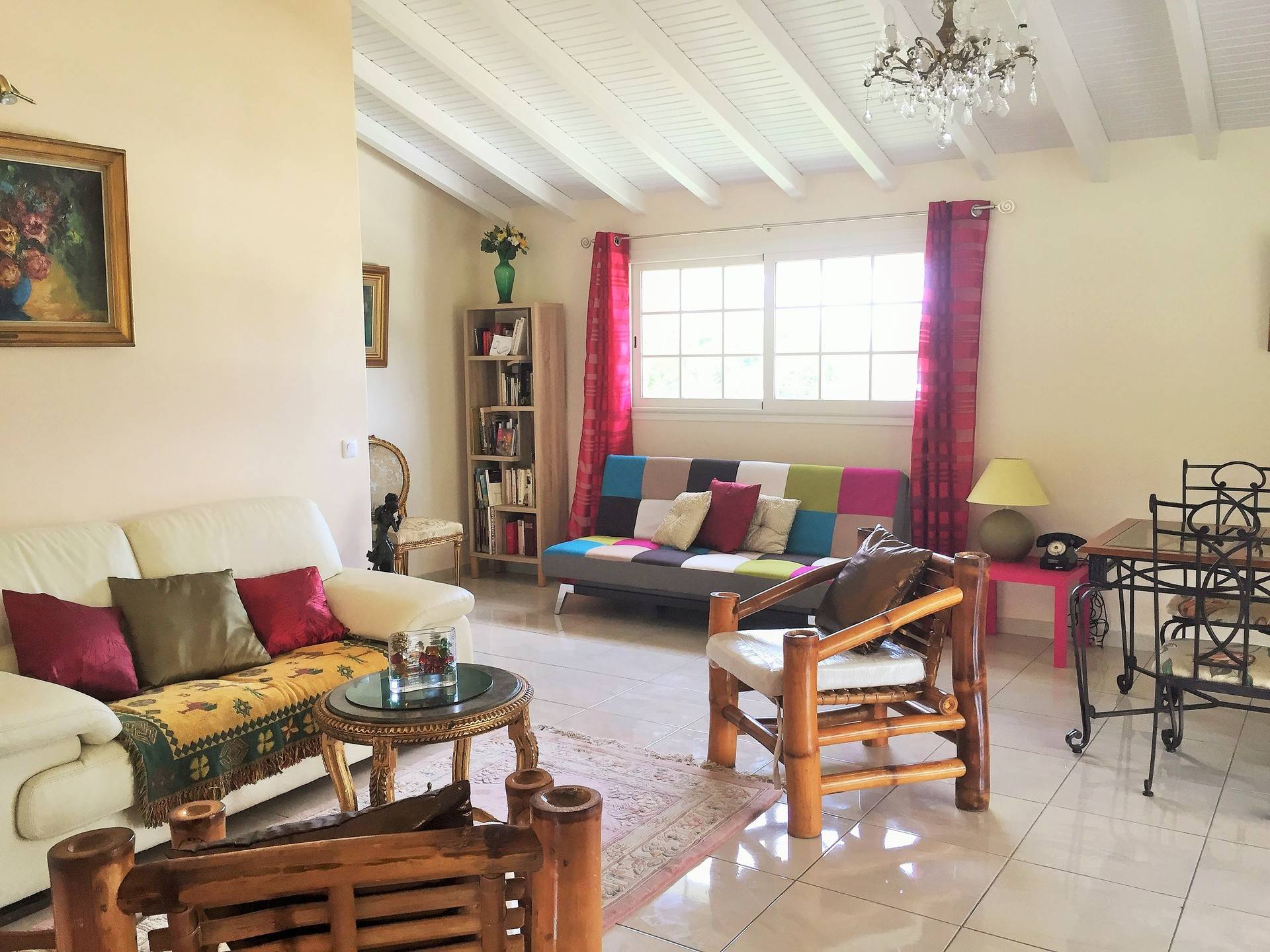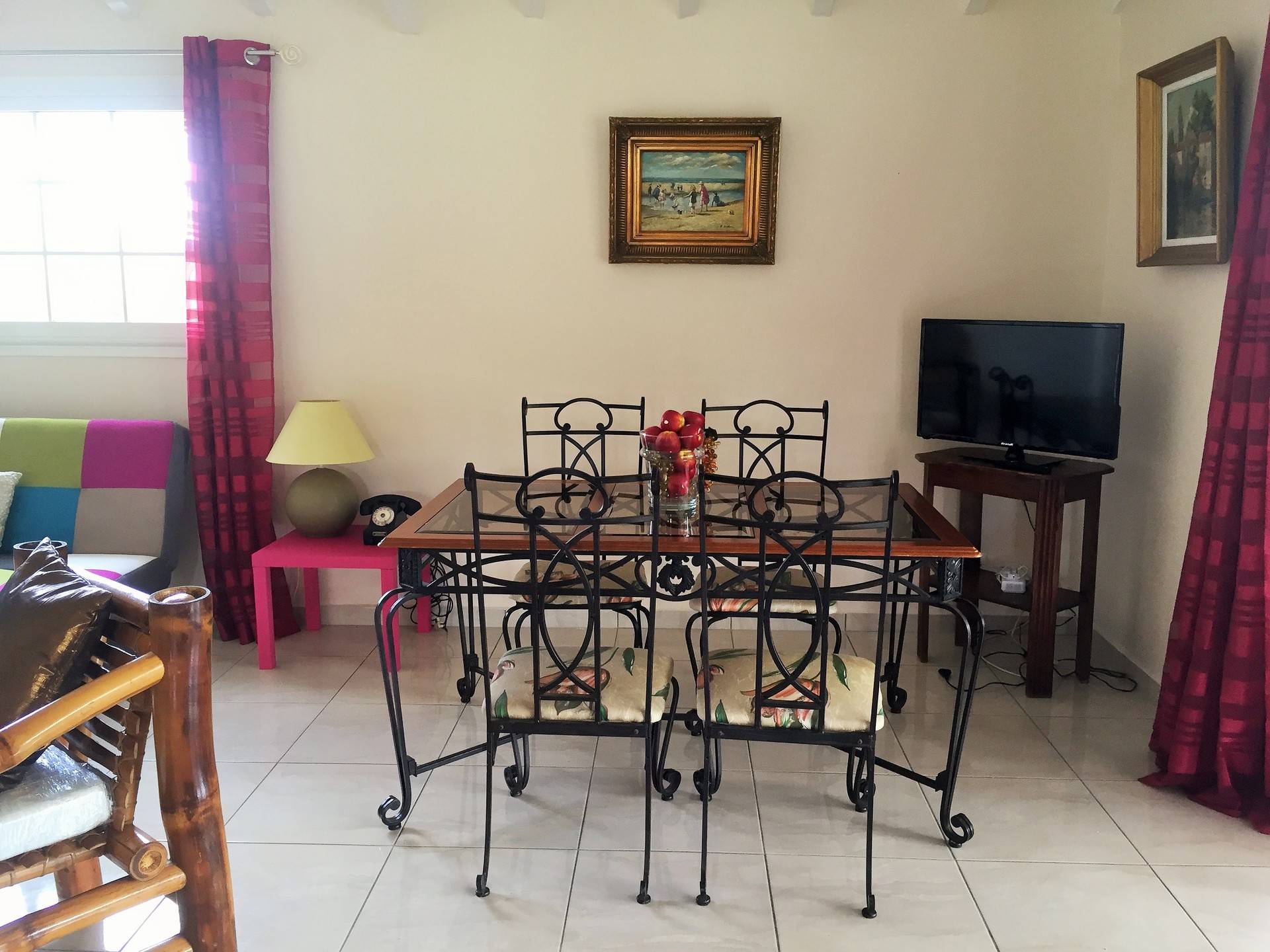 Belle maison agréable possédant une grande terrasse ventilée et au calme avec une belle vue sur la campagne. Facilement accessible depuis la nationale desservant toute la Grande Terre et proche de tous commerces, marchés, restaurants, plages, station essence, terrain de golf international, marina et casino. L'intérieur est spacieux et confortable avec une cuisine aménagée ouverte sur un grand séjour. Machine à laver et lave-vaisselle. Deux grandes chambres climatisées. Deux salles de douches et deux WC. Logement équipé d'une connexion wifi et internet. Place de parking.