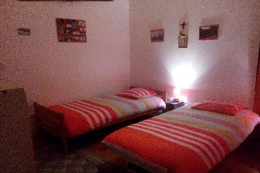 2 grandes chambres indépendantes avec deux grands lits au dernier étage de la maison, plus deux chambres mansardées, avec salle de bain WC commune donc à partager, à l'étage du dessous et WC à l'étage de chambres.