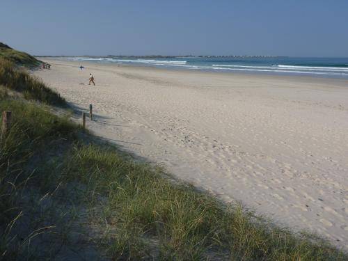 La Mer est à 1 km avec sa superbe plage de sable fin (14 km de long) et à proximité de la Pointe de La Torche (vélos et surfs recommandés !) Calme assuré. Agréablement aménagée et entourée de grands espaces (6 000m²) pour le repos et la détente. Nichée au milieu des arbres, son orientation plein sud, laisse la lumière baigner la cour une bonne partie de la journée.