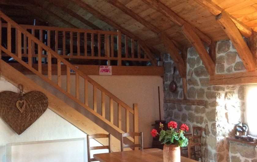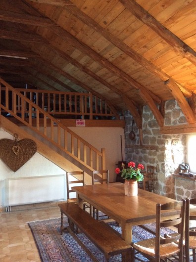 Le Méandier est une grande ferme typique au coeur de la Haute Loire, avec ses murs en pierre et ses toits de lauze . Elle a été construite en 1872. Située dans un parc arboré de 1 hectare et demi, elle vous offre calme et confort pour des vacances inoubliables. Son terrain de tennis privé est mis gracieusement à votre disposition. L'ancienne grange du Méandier a été aménagée pour recevoir 12 personnes, pour un séjour entre amis ou une rencontre familiale. Une superbe cheminée monumentale dans l'esprit du pays, agrémente aussi bien vos soirées au coin du feu que vos repas dans … la salle à manger spacieuse et lumineuse, sur laquelle ouvre une belle cuisine moderne toute équipée Une mezzanine fera le bonheur des enfants avec son grand espace jeu, et celui des adultes avec son deuxième salon et son coin télévision. Le premier espace nuit bien séparé, est constitué de 3 belles chambres à lit double , une salle de bains, et un wc. Dans le grangeou qui communique avec cette partie principale, vous trouverez 2 grandes chambres à lit double, la plus grande possédant également 2 lits simples, ainsi qu'une salle de bains. Ce grangeou ouvre directement sur l'extérieur et la montée de grange, ce qui rend cette deuxième partie complètement indépendante. Vous pourrez profiter de l'ombre des grands arbres, jouir du pré et des parterres fleuris , et admirer la charmante mare aux canards, fermée évidemment. Tence est à 4 km, Le Chambon sur Lignon, à 8 km. Vous pourrez découvrir de nombreux loisirs à proximité : vélo, vtt, randonnées, équitation, escalade, pêche au Lignon ou dans des étangs aménagés, voile et baignade au barrage de Lavalette, paintball , laser game, accrobranche, vélo rail....etc.... et ski en saison au Lizieux ou au Mézenc. Vous pouvez nous contacter par mail ou par téléphone au 04 71 65 44 67 ou au 06 20 52 38 51. Lire moins Lire la suite