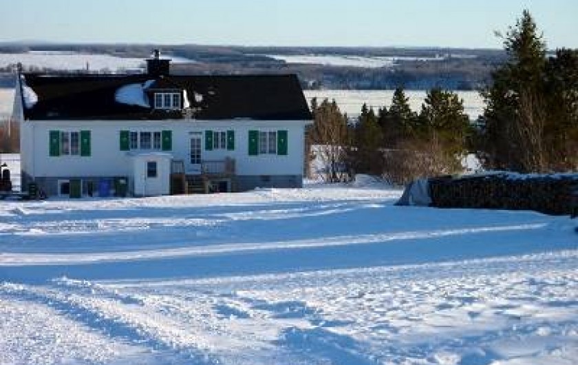 La maison est située en retrait de la route sur une ferme maraîchère de 10 hectares, en haut d’une colline offrant une vue imprenable sur le fleuve. Nous sommes à 15 minutes de route du pont de l’Île d’Orléans et 25 minutes du Vieux Québec