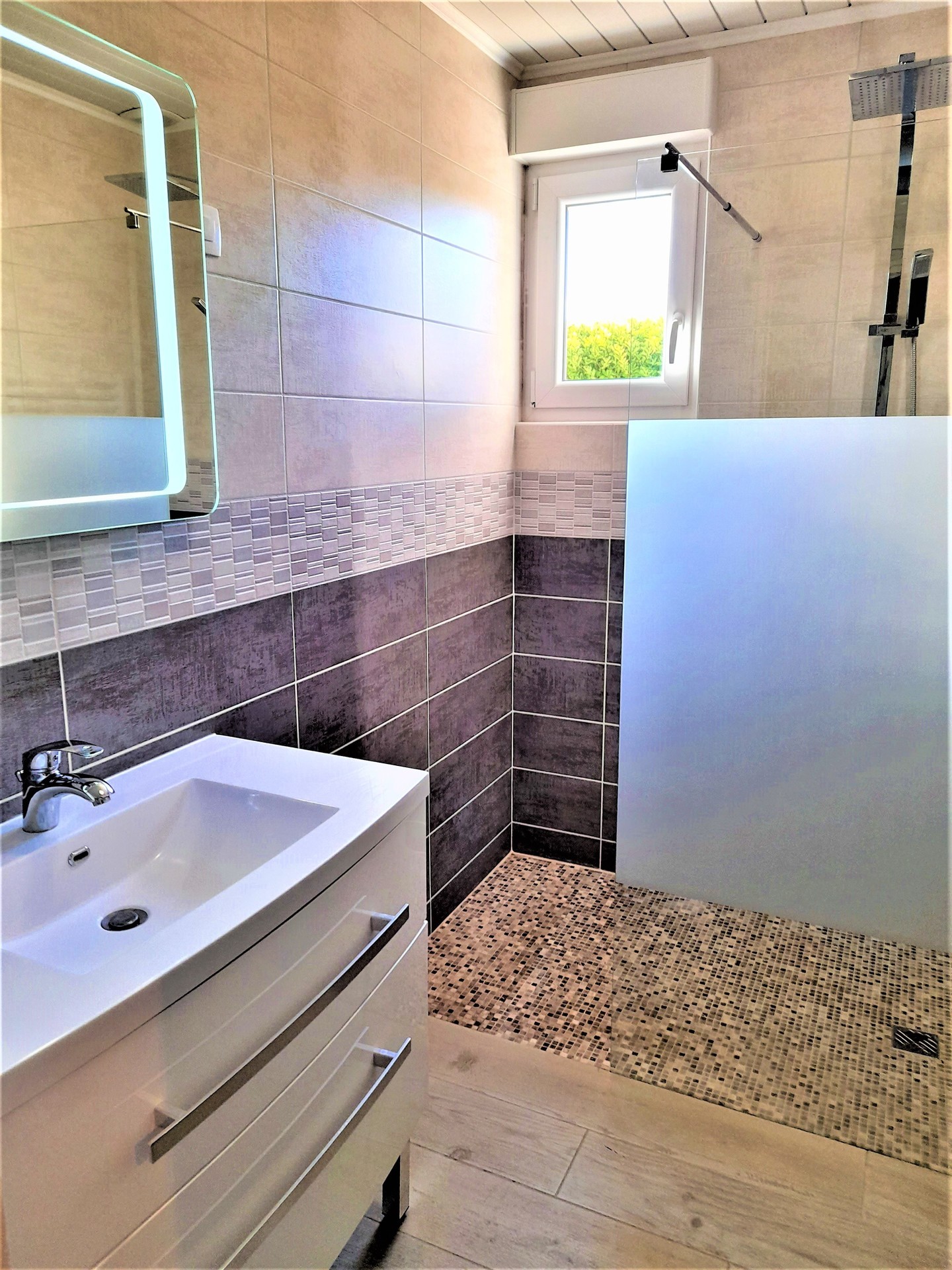 . ,2 chaises hautes, 1 table à langer ,1 baignoire ,sur demande ) 4 salles d'eau avec chacune 1 sèches cheveux, 3 wc, terrasses, 2BBC, 2 salons de jardin,