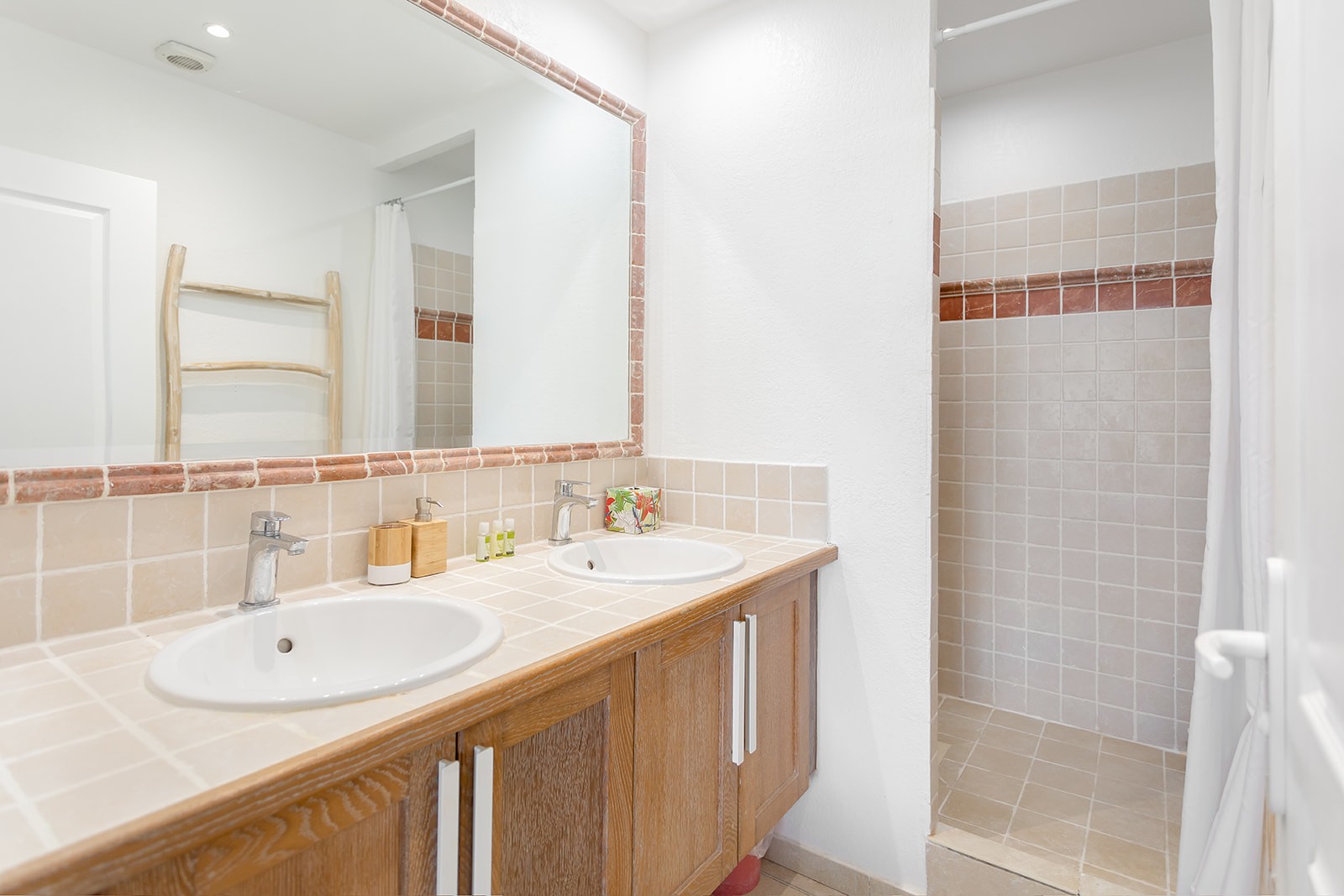 Les 2 chambres ont chacune leur salle d'eau avec douche et lavabos. Des toilettes indépendants se trouvent également à l'étage.