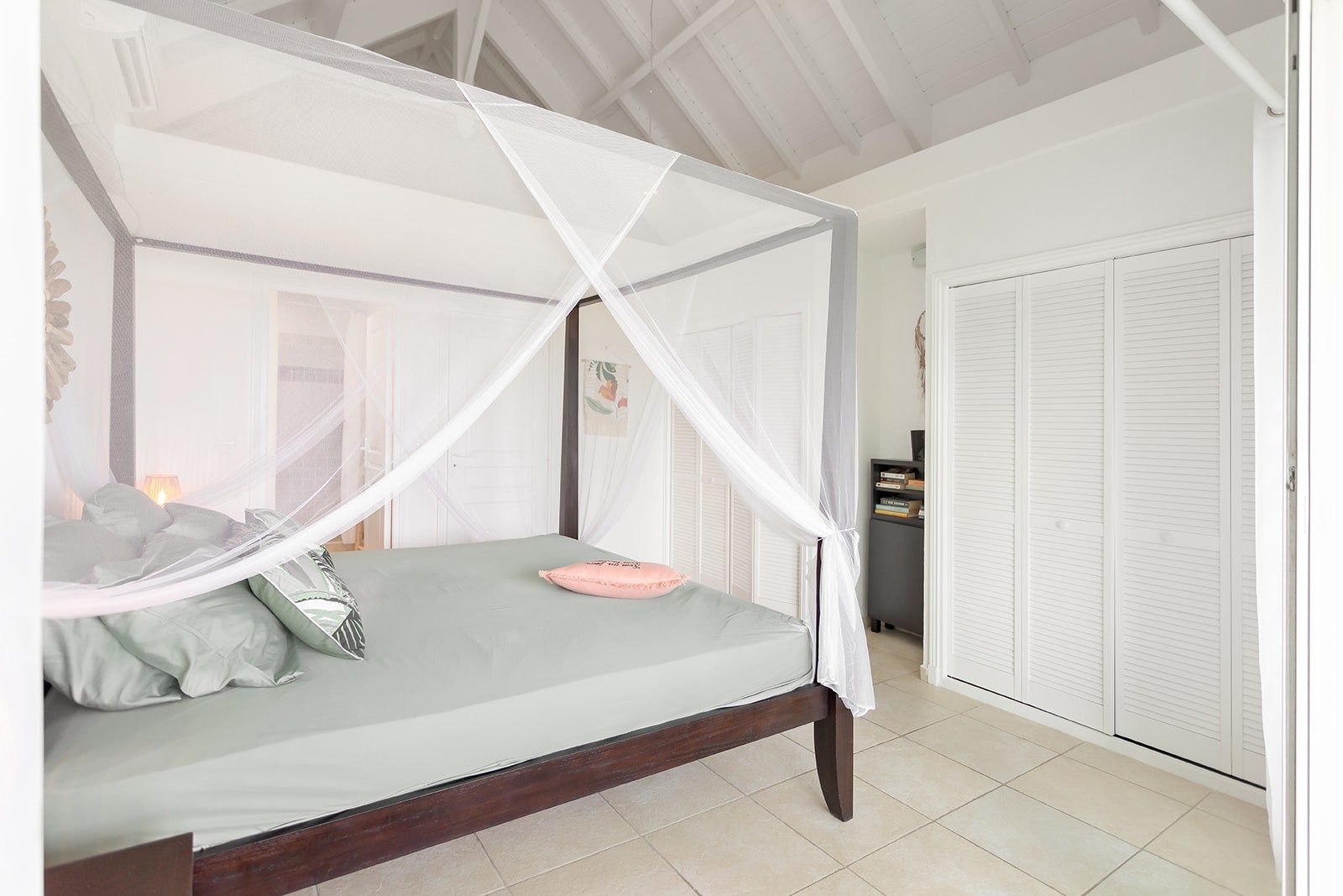 Elle dispose à l'étage de 2 grandes chambres avec lit King size dont une s'ouvrant sur une terrasse qui offre une vue magnifique sur la piscine de la résidence et l'océan!