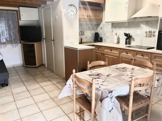 La terrasse close, exposée plein sud, a un store banne, table et chaises de jardins, une servante, barbecue électrique et plancha ainsi que deux transats pour les petits déjeuners ou par exemple le soir pour parler des bons moments autour d'un apéritif et barbecue.