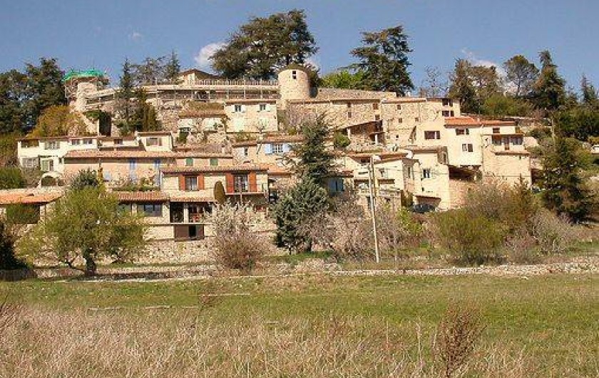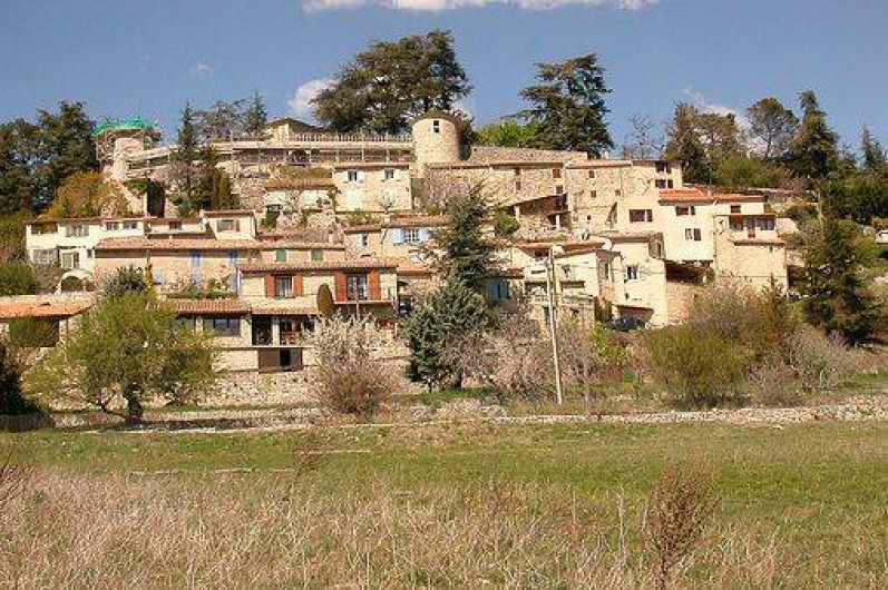 Dans village perché (altitude 600m), charmante et grande maison exposée plein sud, très calme car située en lisière du village, jardin clos, sans vis-à-vis, 5 chambres…