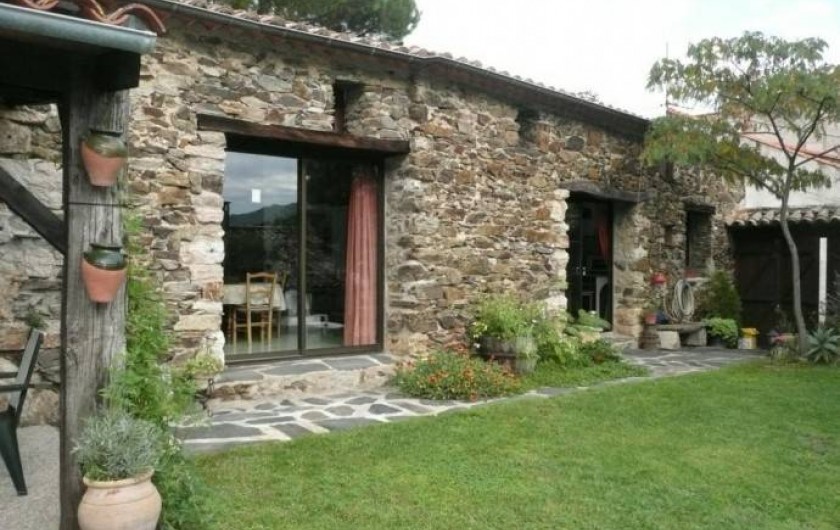 Entre mer et montagne, ancienne grange indépendante restaurée dans un environnement de verdure et fleurs typiquement méditerranéennes. Cuisine dans salle de séjour (lit 2 pers.). Etage : Ch1. (lit 2 pers.), salle d'eau, wc, chauffage électrique, TV. Poss. forfait ménage fin de séjour 10 €/pers., et location draps. Lits faits à l'arrivée pour les séjours moto. Jardin privatif exposé plein sud, ombragé (100 m²), s.d.j., barbecue, local fermé pour motos. Superficie : 80 m².