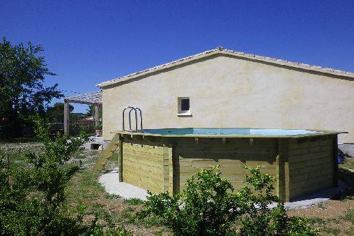La piscine en bois , octogonale de 5.60m de diamètre et 1.22m environ de profondeur, vous permettra de vous rafraîchir lors des grosses chaleurs!