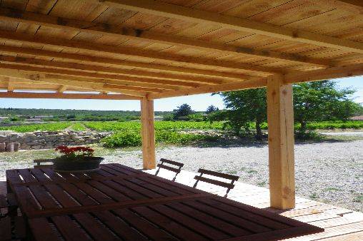 Maison neuve construite à l'ancienne avec grande terrasse en bois couverte, idéalement située en bordure du petit village de saint Remeze. Lieux calmes et agréables avec vue sur les champs de lavandes, les vignes, les amandiers et la garrigue.