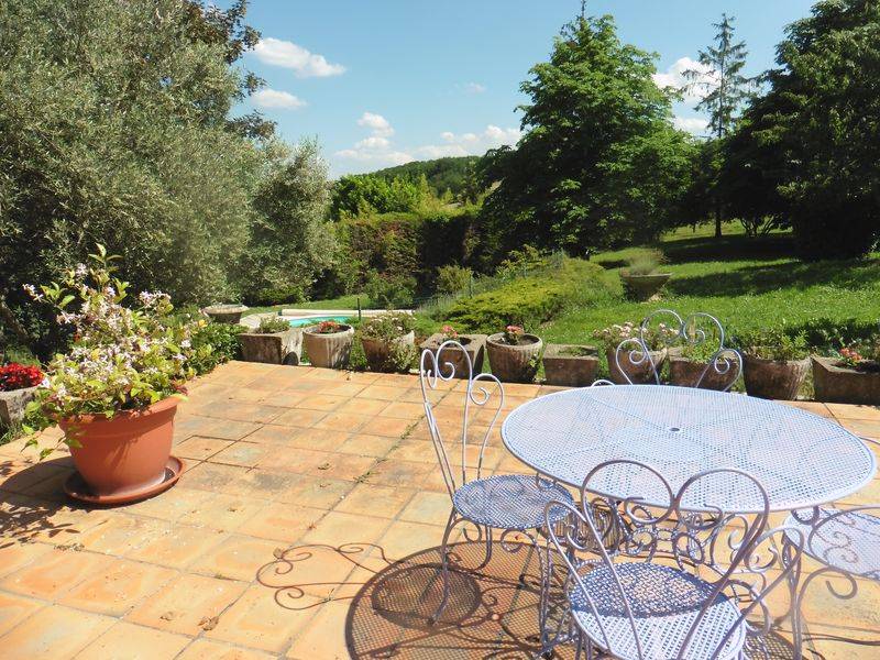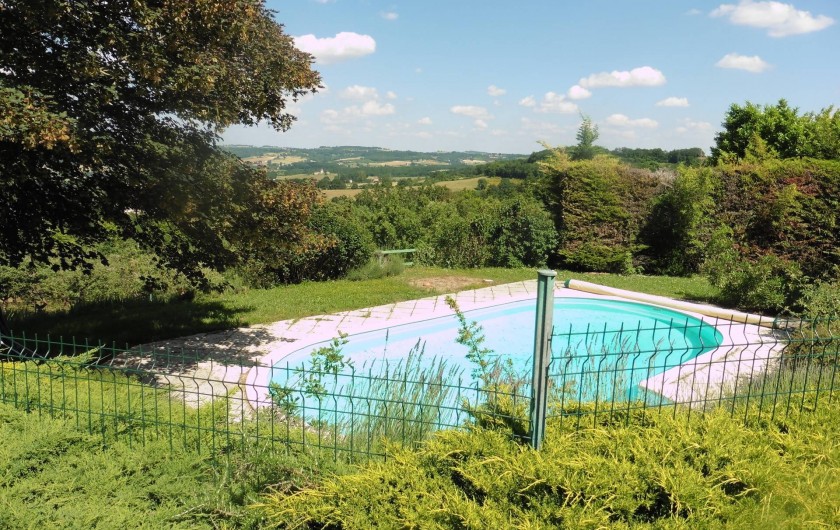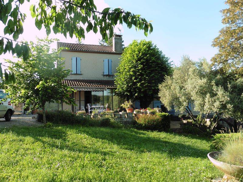 Maison de campagne dans un parc très arboré avec une grande piscine privée . Calme assuré. Perchée sur une colline avec une très belle vue sur la vallée. RDC séjour -cuisine (avec frigo américain , four micro onde, lave vaisselle)une grande véranda fermée et une grande terrasse avec plancha. 1er étage : 3 chambres -deux avec lit en 140 et une avec deux lit en 90, salle d'eau avec douche, wc. A votre disposition une buanderie avec lave linge et sèche linge. Draps ,linge de maison et de toilette fournis. Nombreuses possibilités de randonnées, visite de bastides ,marchés nocturne"........