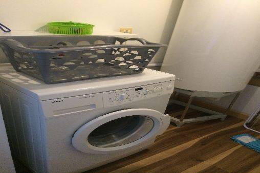 º Une petite buanderie avec machine à laver, aspirateur, fer et table à repasser et séchoir, nécessaire pour laver.