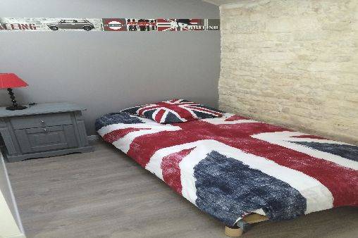 une chambre avec un lit double 140X190 et armoire, avec linge de lit compris (draps housse, housse de couette et taies ) et lit parapluie.