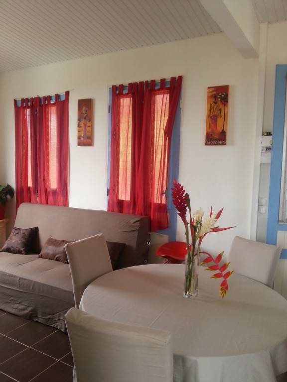 Maison créole de 90 m2, 2 grandes chambres + 1 petite chambre ouverte, 2 salles de bain avec toilette; capacité d'accueil : 2 couples + enfants. Très cosy offrant une vue panoramique sur le 'Rocher du Diamant ' et la 'demoiselle couchée' (petite montagne très étalée en forme de femme nue couchée) comprenant tout l'équipement et doté d'un très bon confort. Linge de lits fourni. Proximité des plages (10 mn en voiture).