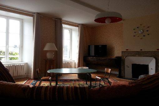 Le salon aménagé à l'étage est très lumineux et permet de profiter de la place arborée devenue célèbre depuis le Débarquement des forces alliées en 1944.