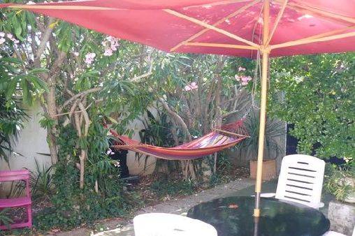 5 minutes à pied des rues piétonnes. endroit calme. fraicheur dans la bastide provencale (murs en pierres 60cm) jardin entierement clos et independant.