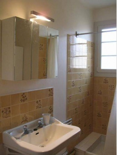 - A l'étage : 2 chambres avec un lit double, 1 chambre avec un lit simple, 1 salle de bain avec douche et 1 WC séparé.