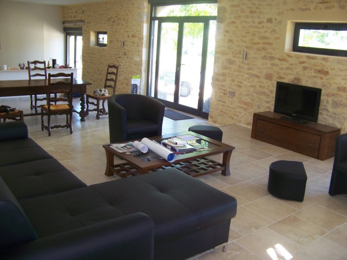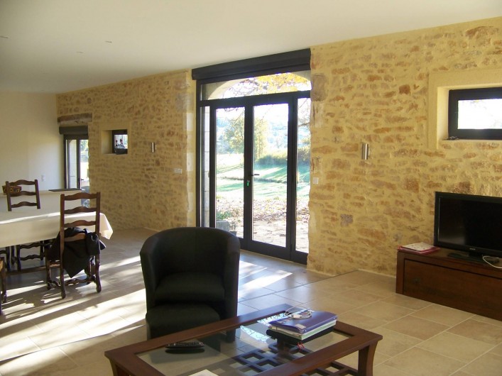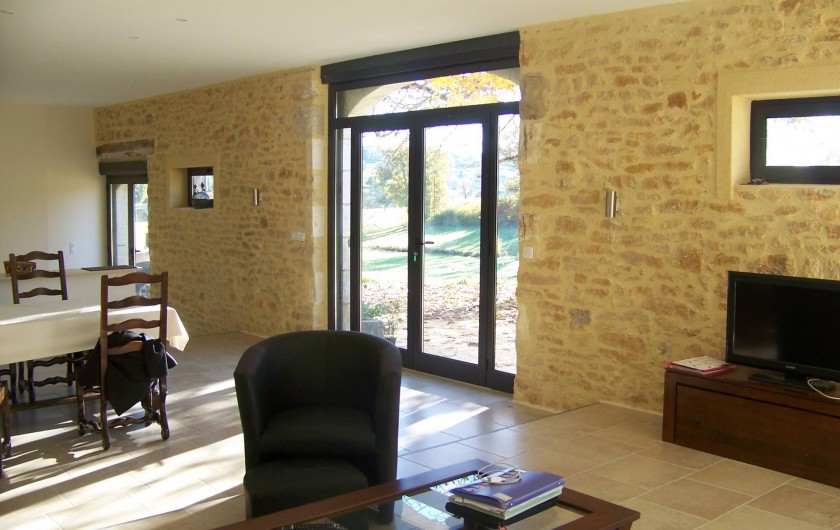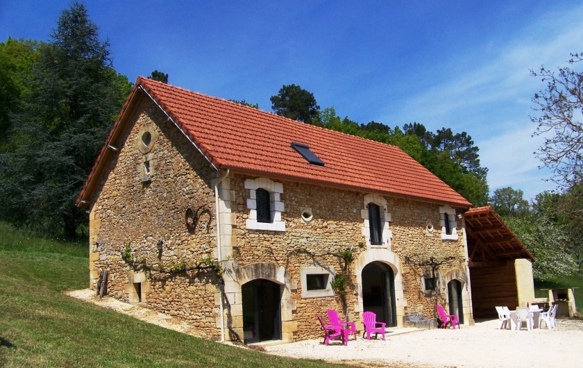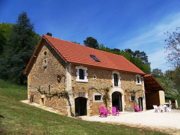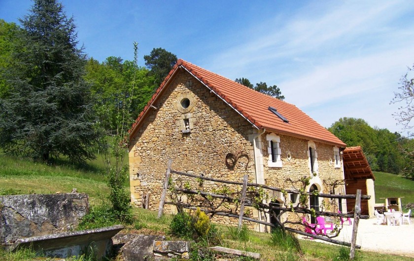 Maison de vacances de 160 m² en Périgord, Cette bâtisse traditionnelle en pierre était la grange de la ferme, elle a été aménagée cette année, elle est située sur une propriété de deux hectares : la campagne à deux pas du centre historique de Sarlat et des commerces.