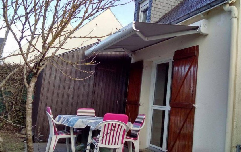 Salon de Jardin sur terrasse ( store- banne)- Barbecue – Lave-linge dans cabanon
