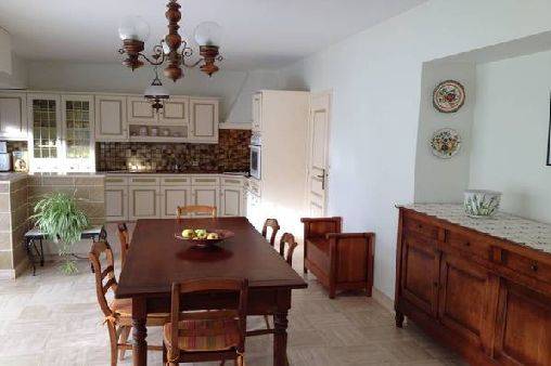 Landrezac. Presqu'île Rhuys. Villa spacieuse, avec vue sur mer, capacité 2/7 personnes (+ 1 lit bébé) Avec jardin clos arboré. Cuisine équipée, lave-vaisselle, séjour, salon, 3 chambres + mezzanine, 2 salles de bains, 2 wc. Garage avec lave-linge et sèche-linge. 2 terrasses avec salon de jardin et barbecue.