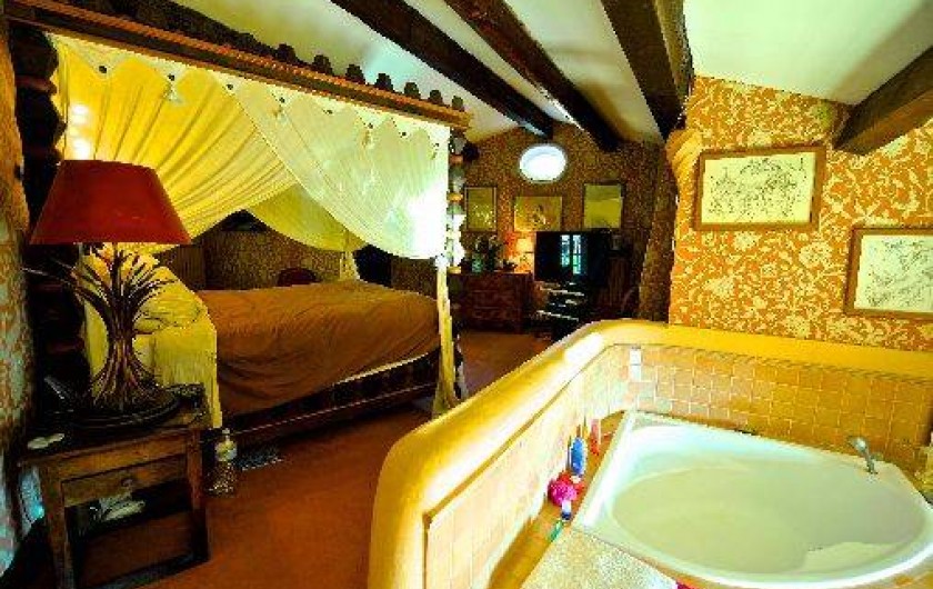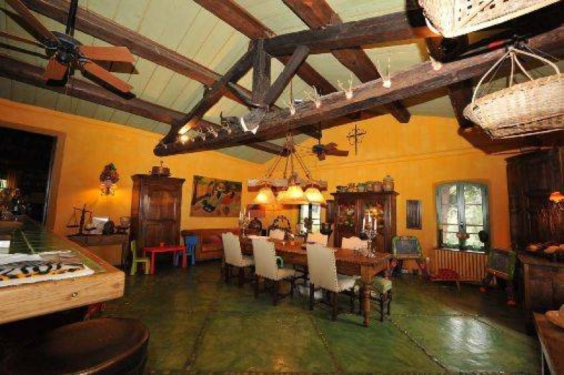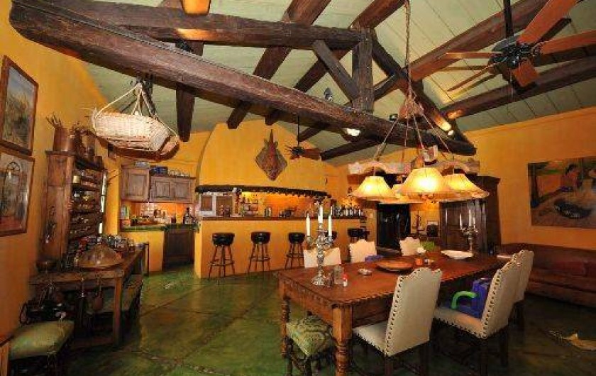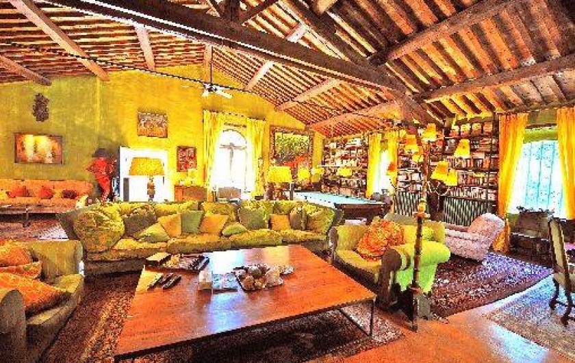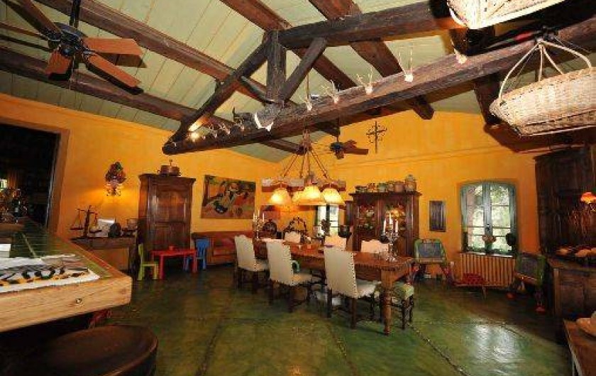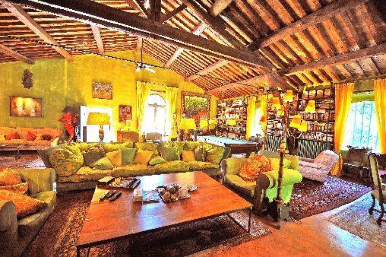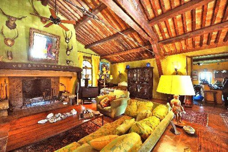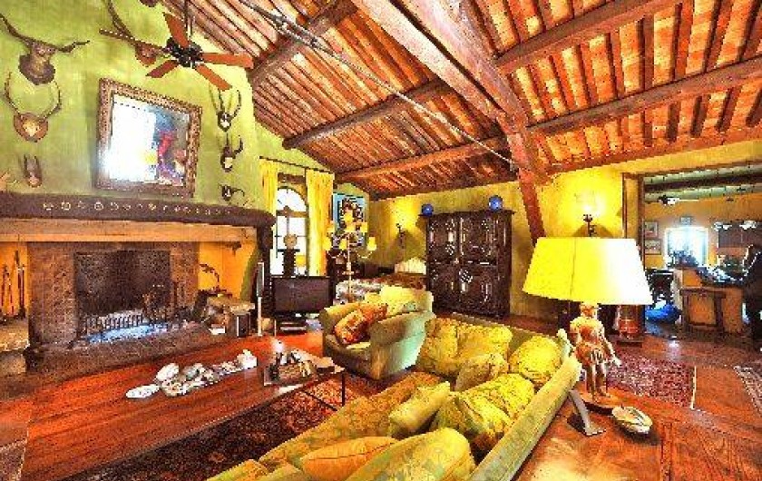 L'interieur se compose d'un salon géant avec cheminée, très grande cuisine professionnelle, de 2 chambres a lit double, 1 chambre enfants a deux lits de 90cm, plus un grand lit dans le grand salon, 3 salles de bains et demie, Wifi, 3 TV/Canalsat.
