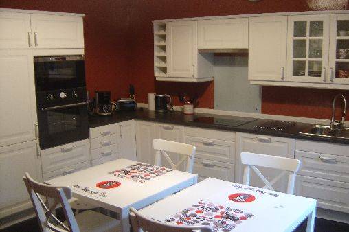 Rez de chaussée : bureau - 1 chambre (TV - 1 lit double 160x200) - salon - salle à manger - Cuisine équipée (Réfrigérateur/Congélateur, lave-vaisselle, lave-linge, micro onde, four, plaques électriques, TV) - salle de bain (douche) - WC indépendant.